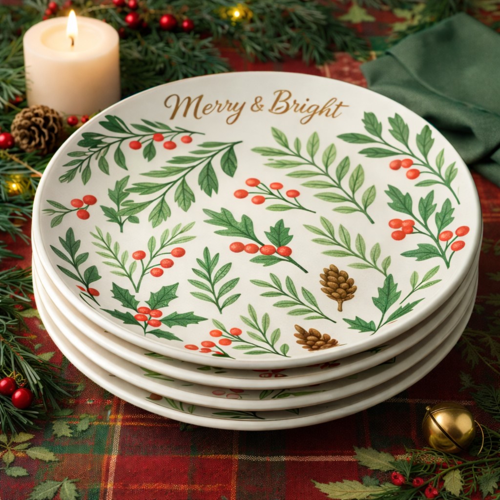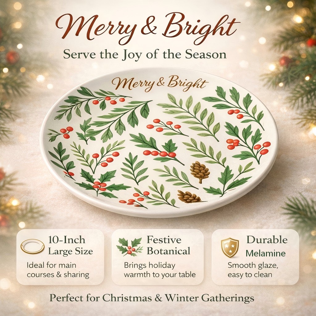 Festive Holiday Design: Features a cheerful Merry & Bright Christmas theme with greenery, berries, and pinecones