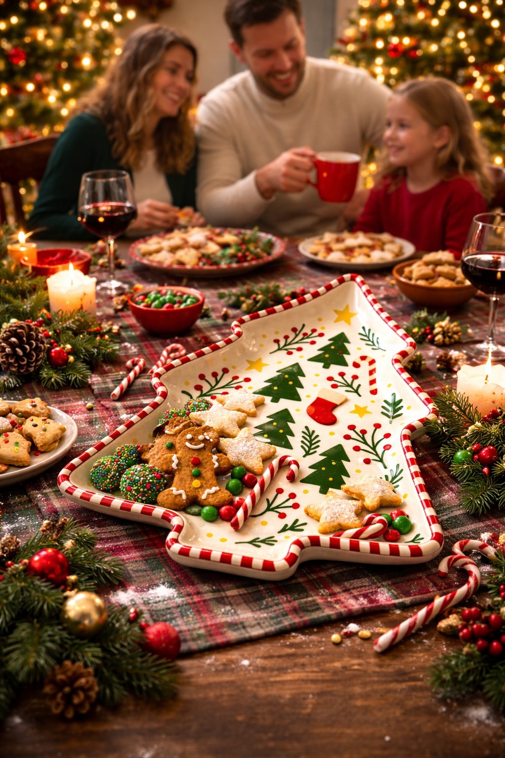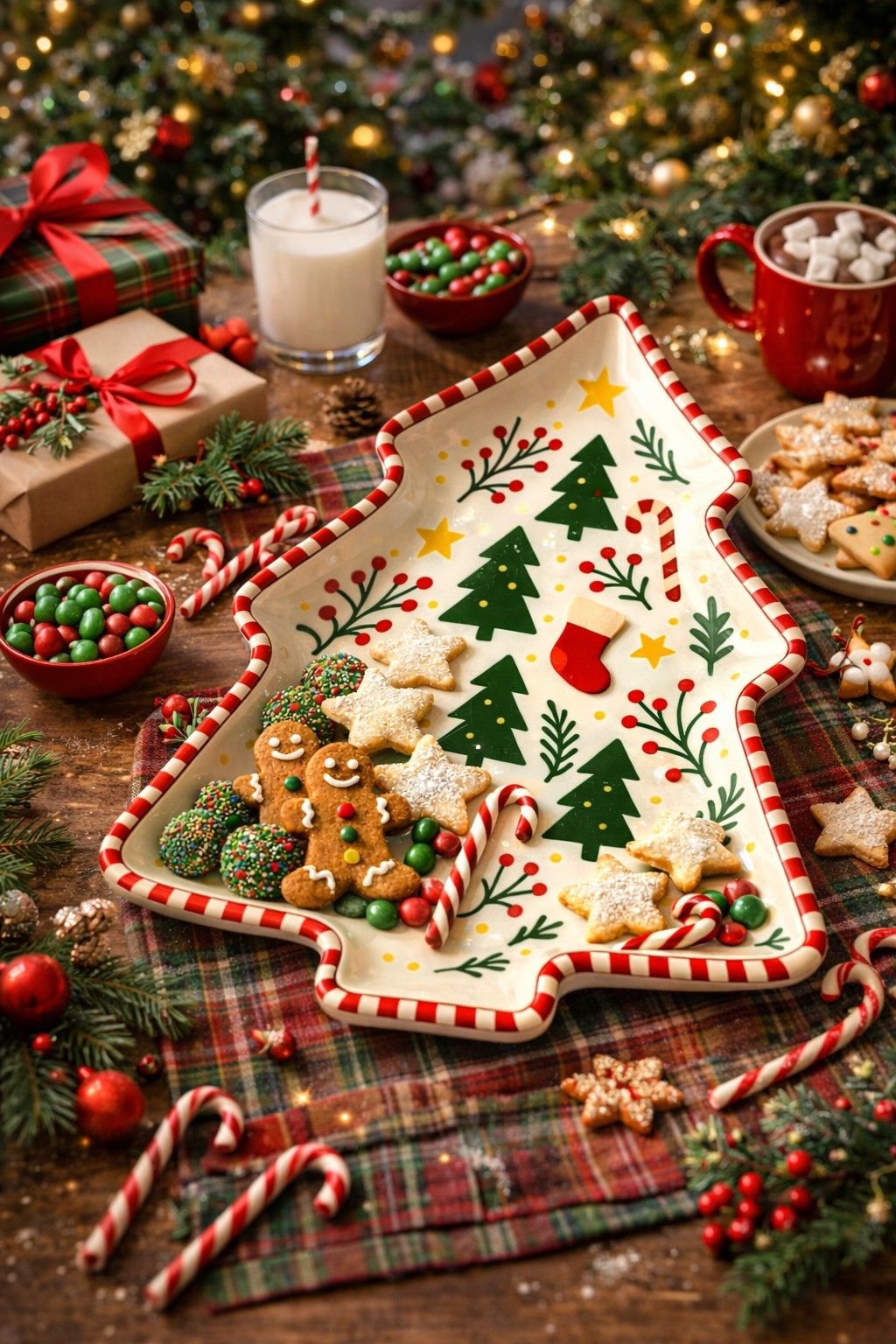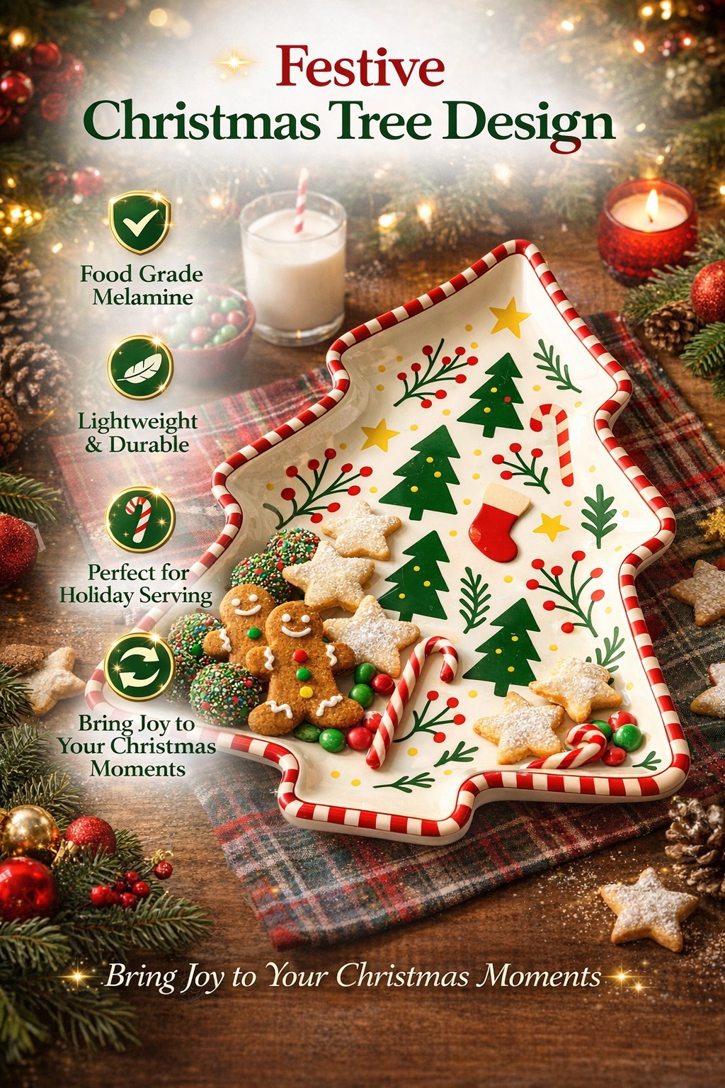 Festive Christmas Tree Shape: Tree-shaped design with classic holiday elements adds instant Christmas charm