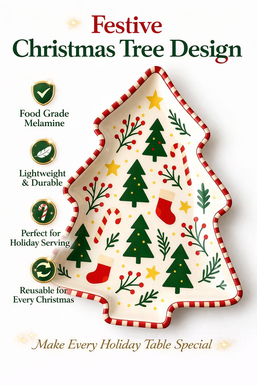 Durable Melamine Material: Lightweight, sturdy, and break-resistant for long-lasting seasonal use