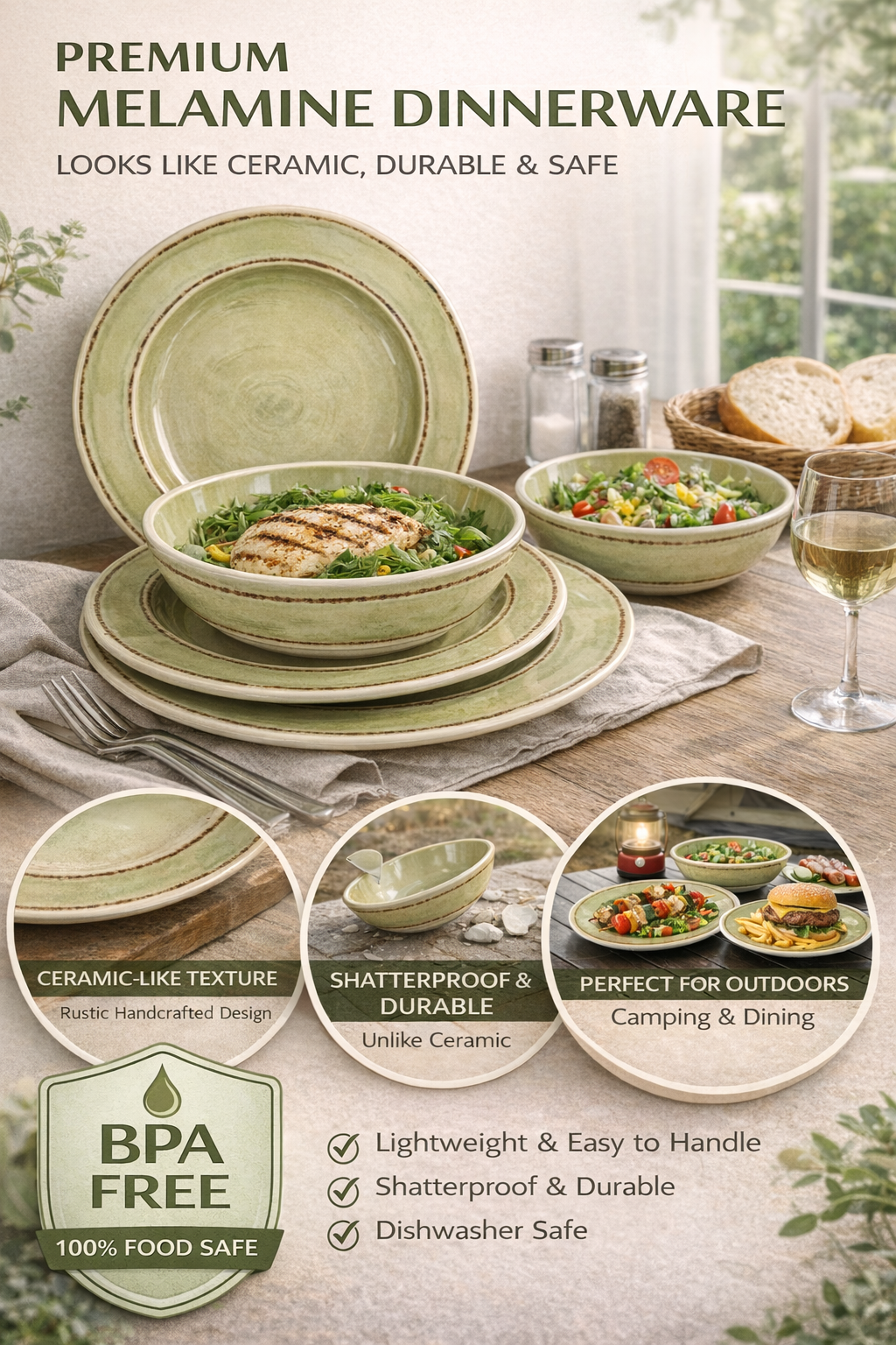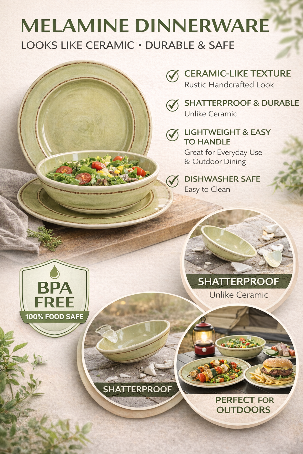 Commercial-grade melamine, durable & break-resistant