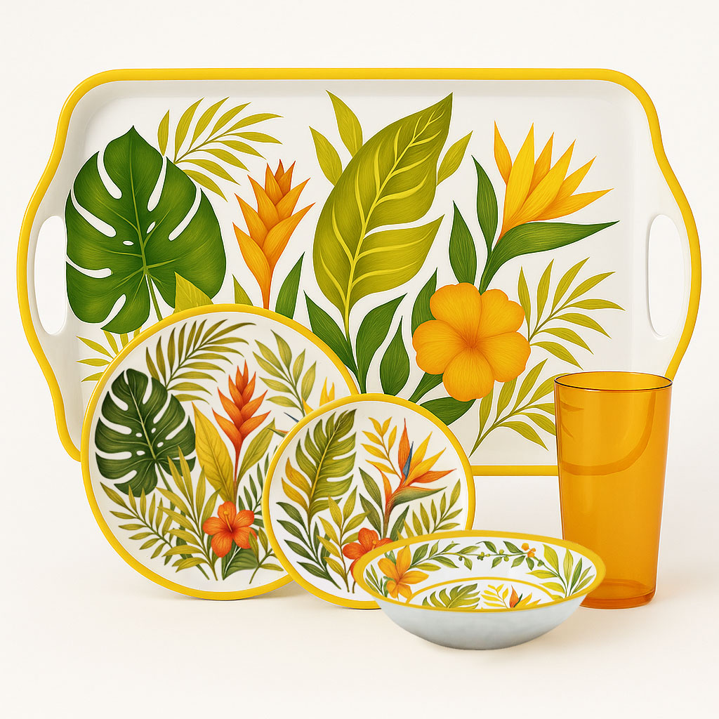 Bright botanical patterns ideal for resorts, hotels and restaurants.