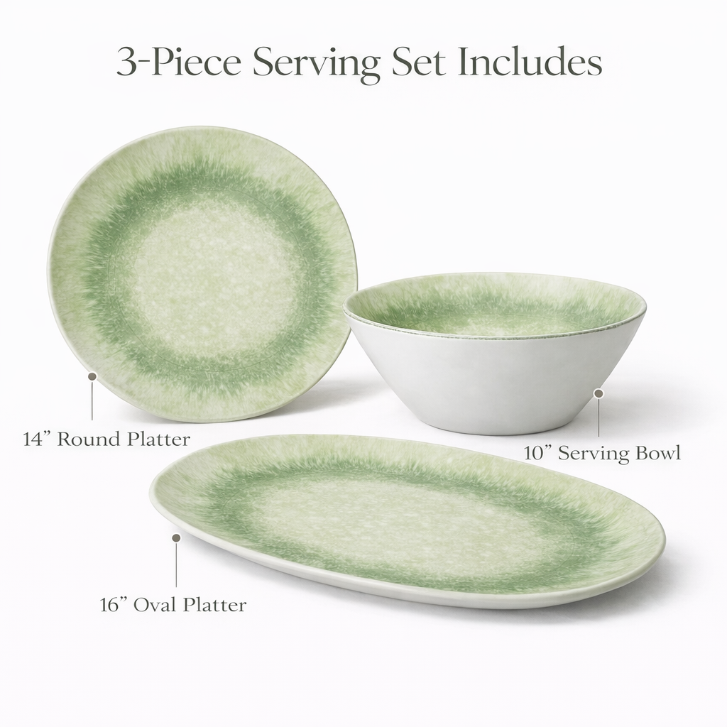 Includes round platter, oval platter and serving bowl