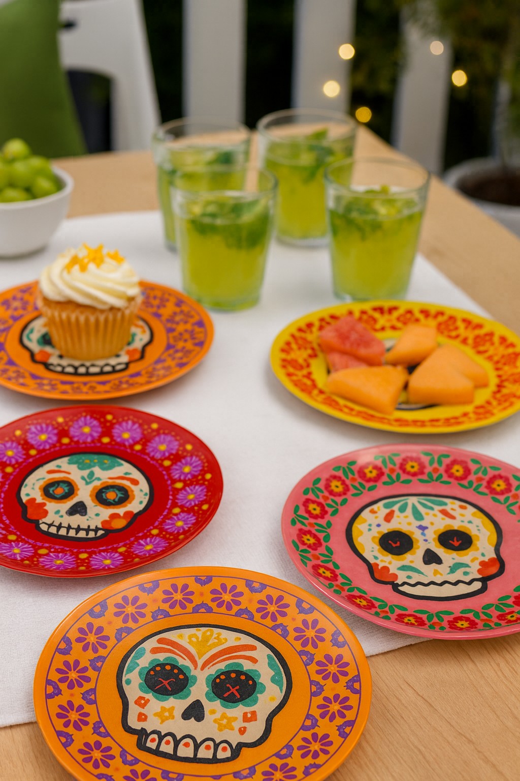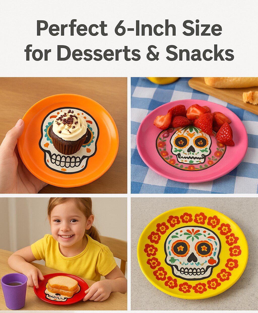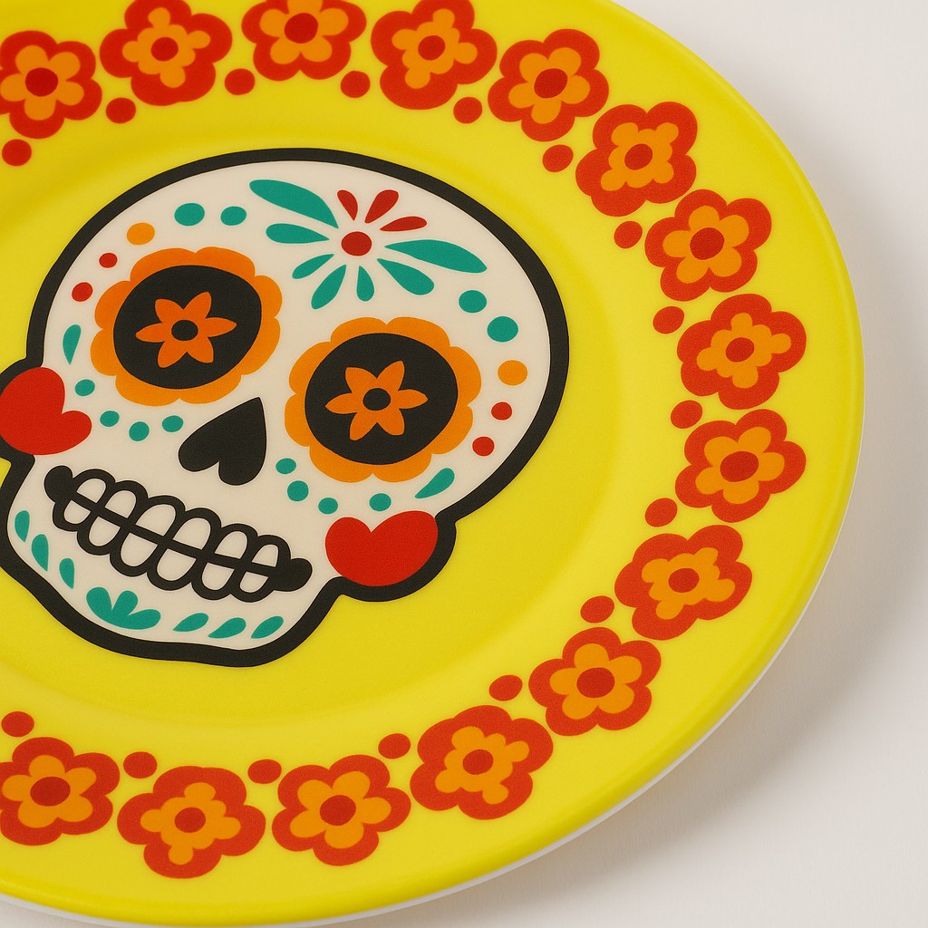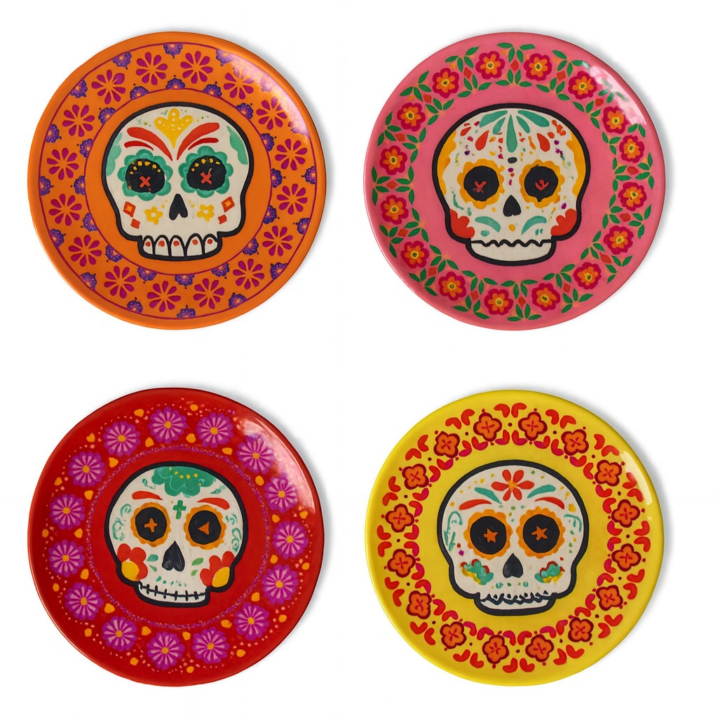 Add bold color and festive charm to your Halloween table with these vibrant skull design plates. Inspired by Day of the Dead style, each plate features a detailed ghost skull pattern surrounded by colorful floral accents, creating a playful yet spooky look perfect for Halloween and pumpkin-themed celebrations.