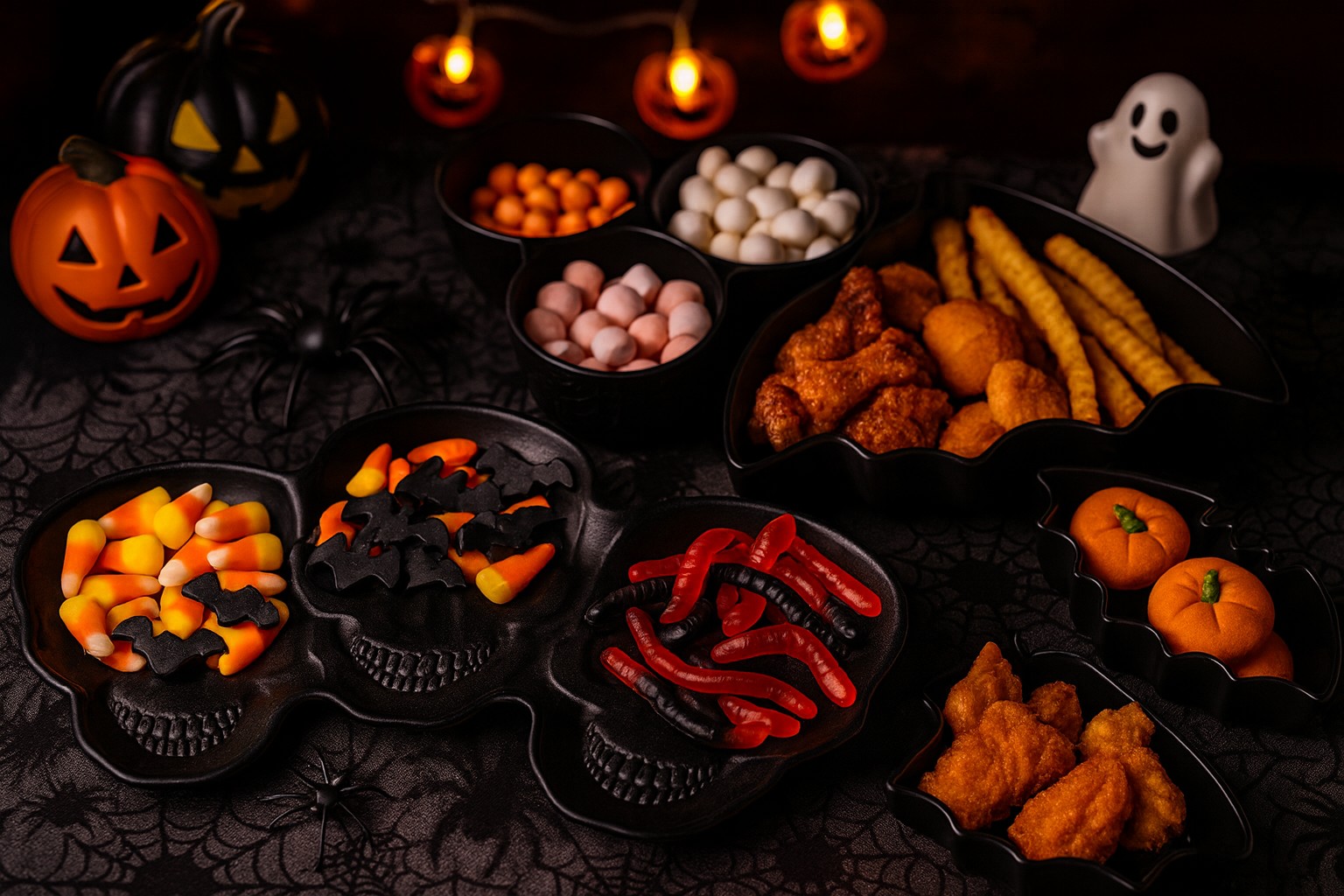 The 3-compartment design keeps foods separated and organized, making it both practical and eye-catching for your Halloween table setup.