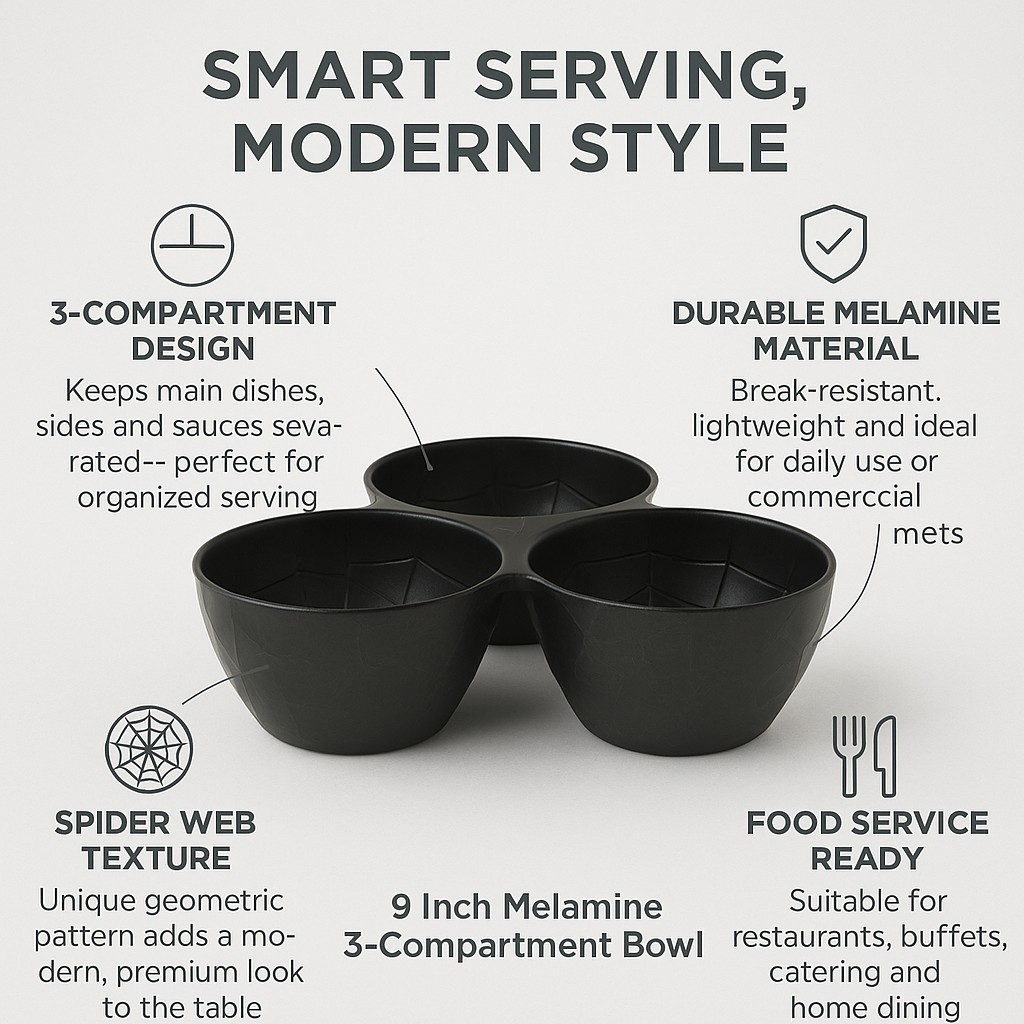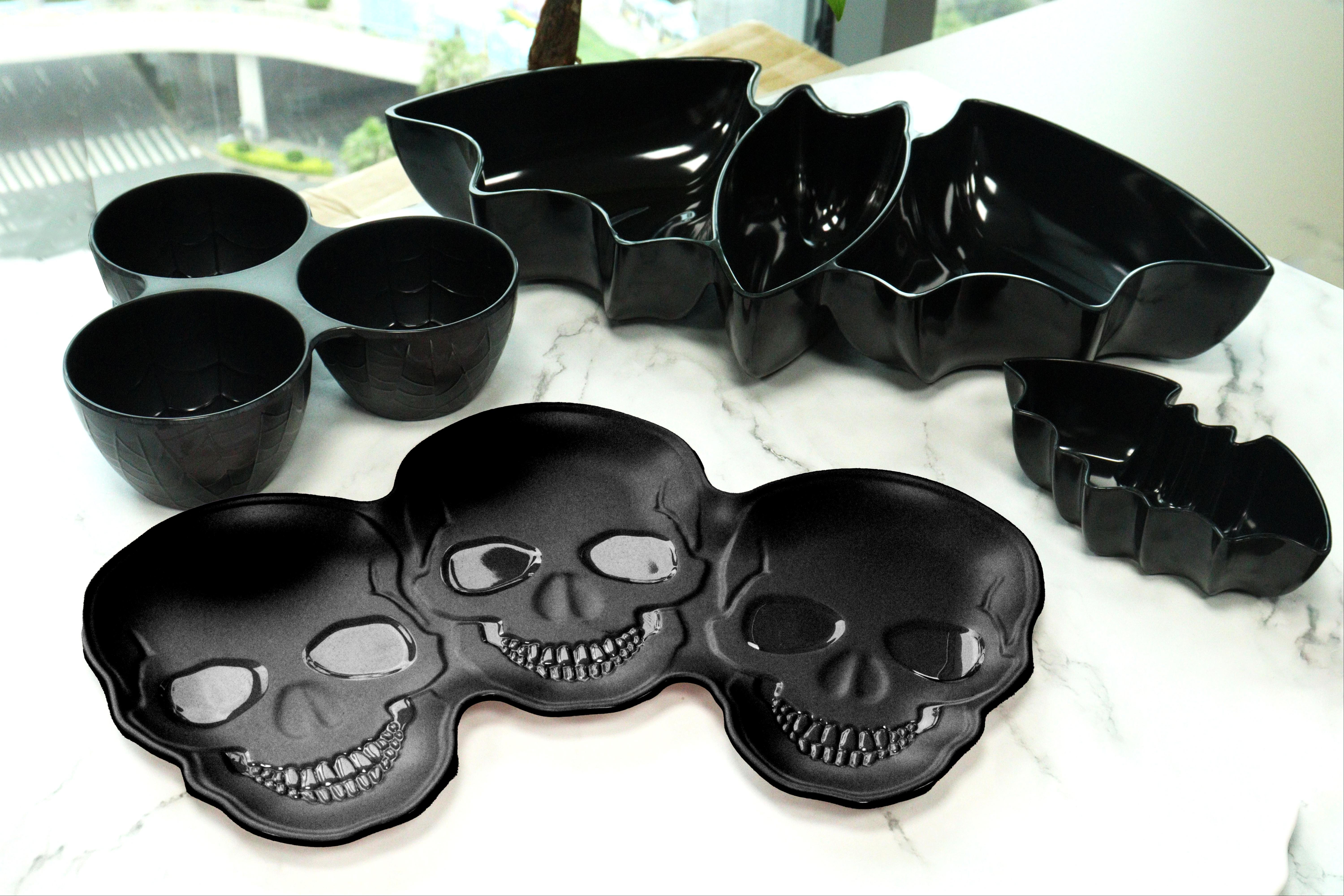 Celebrate Halloween in spooky style with this modern 3-compartment serving bowl.