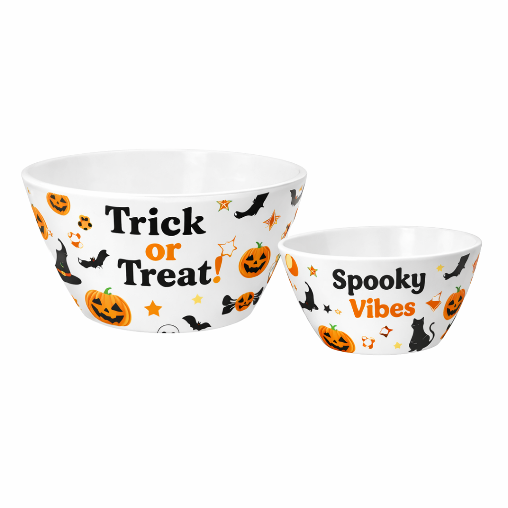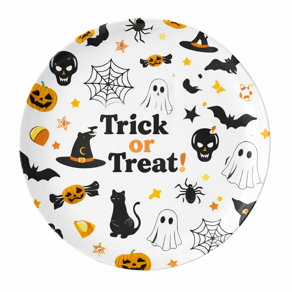 Featuring classic Halloween elements like pumpkins, bats, ghosts, and “Trick or Treat” prints to create an instant festive atmosphere.