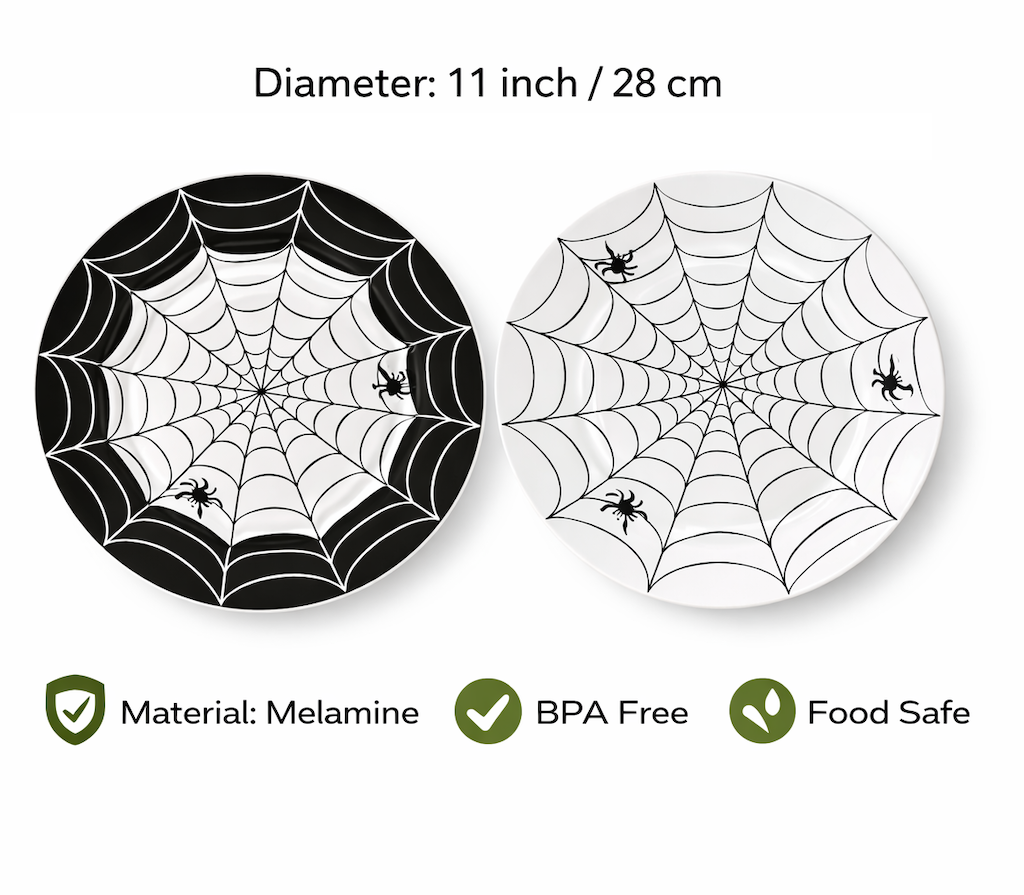 Designed in a striking black and white color mix, perfect for creating a bold and modern Halloween table presentation.