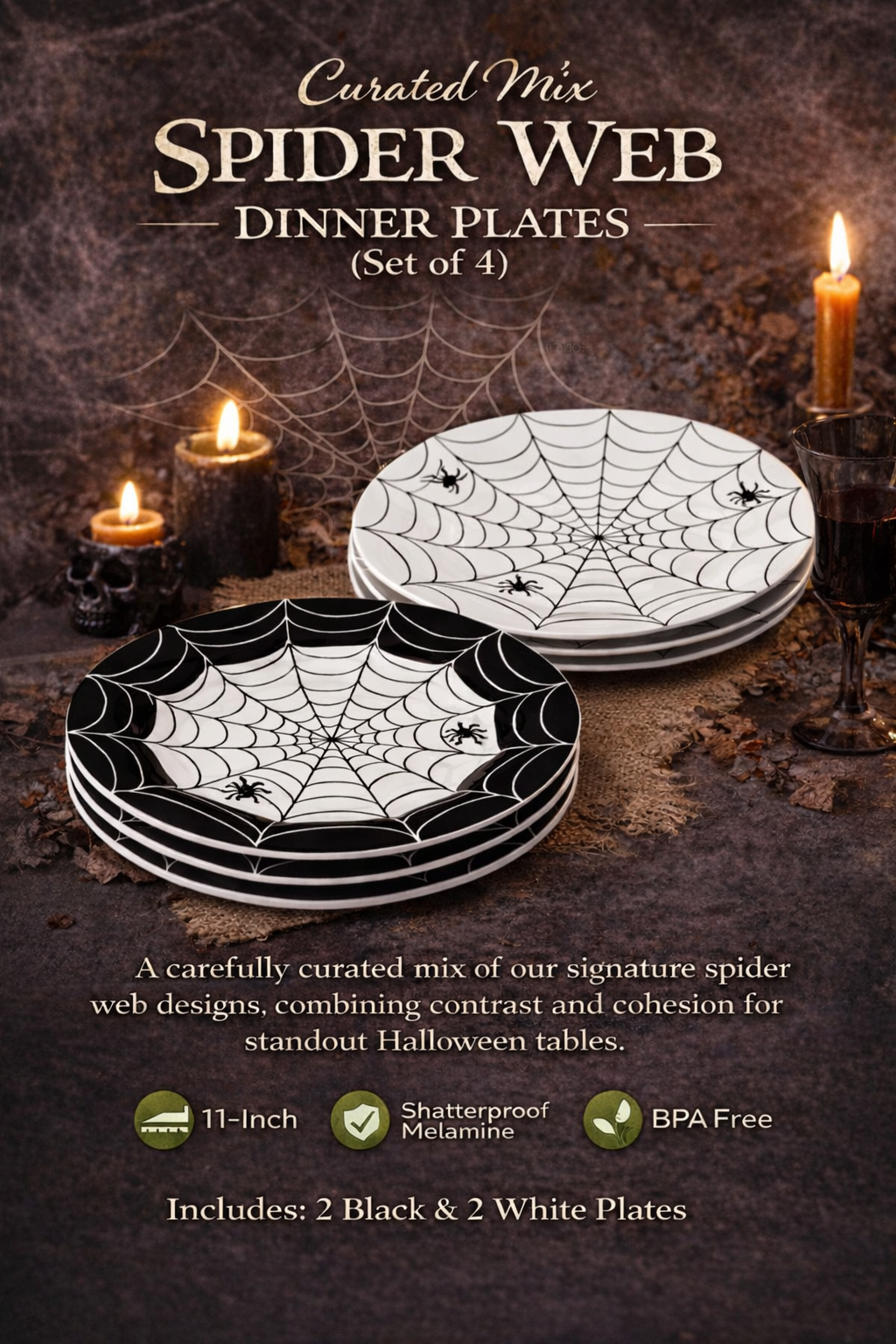 Perfect for Halloween dinners, themed events, fall celebrations, and spooky home entertaining.