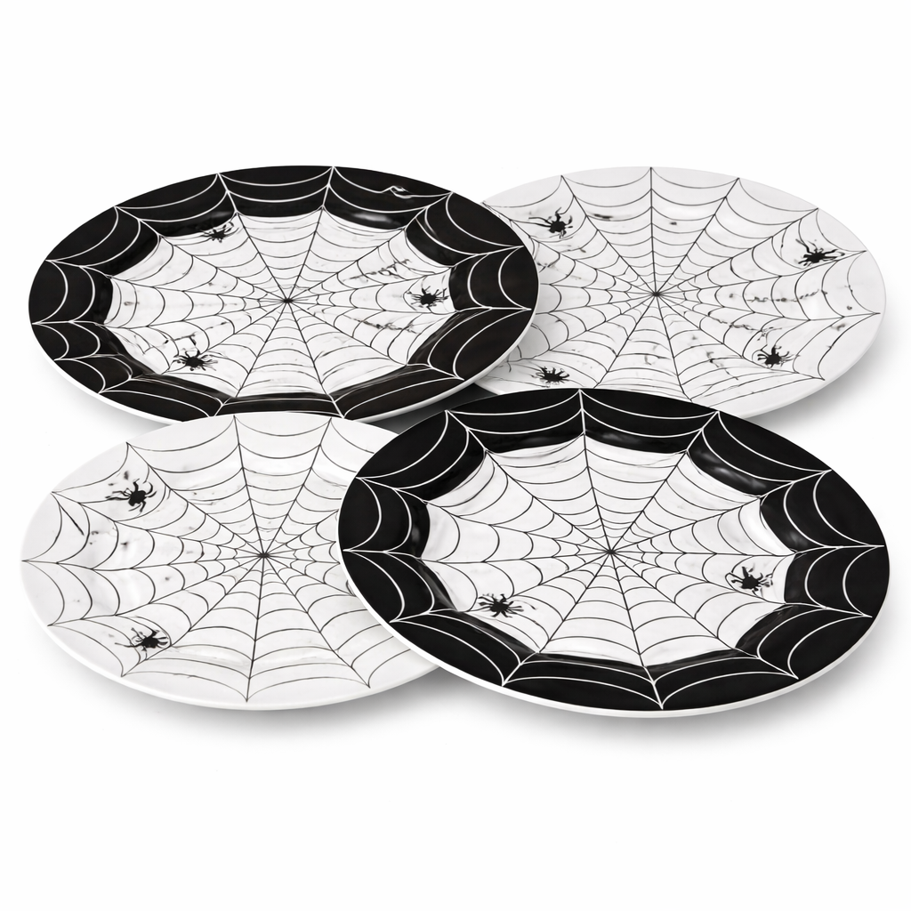 Includes four matching plates, ideal for themed table layouts, family gatherings, or seasonal décor displays.