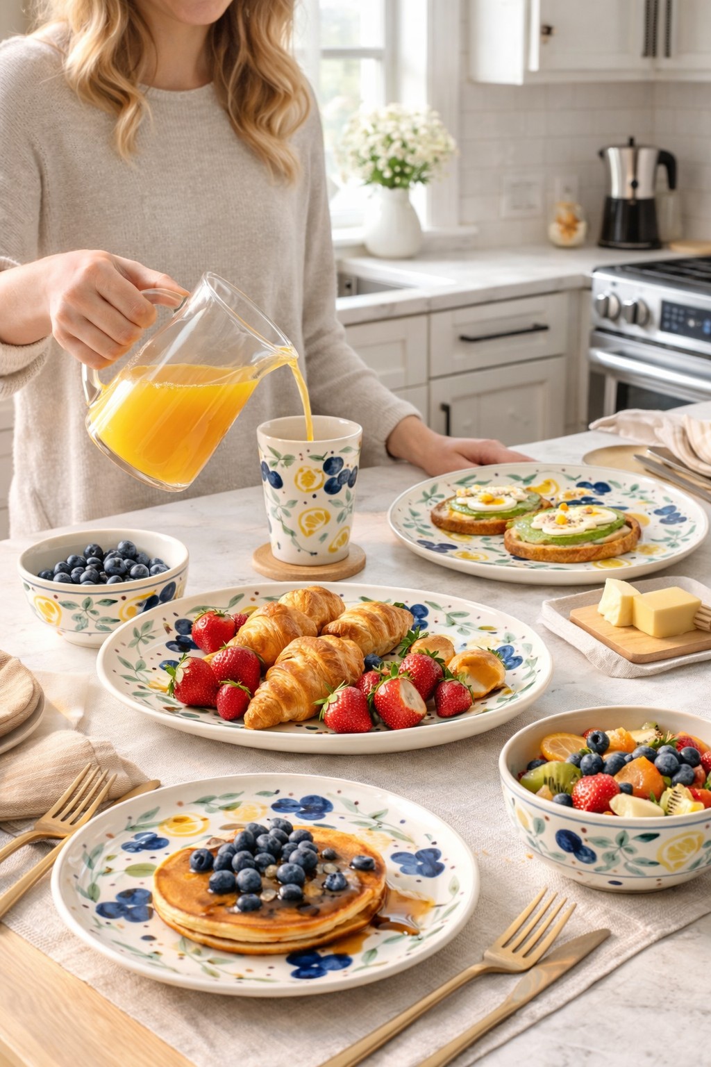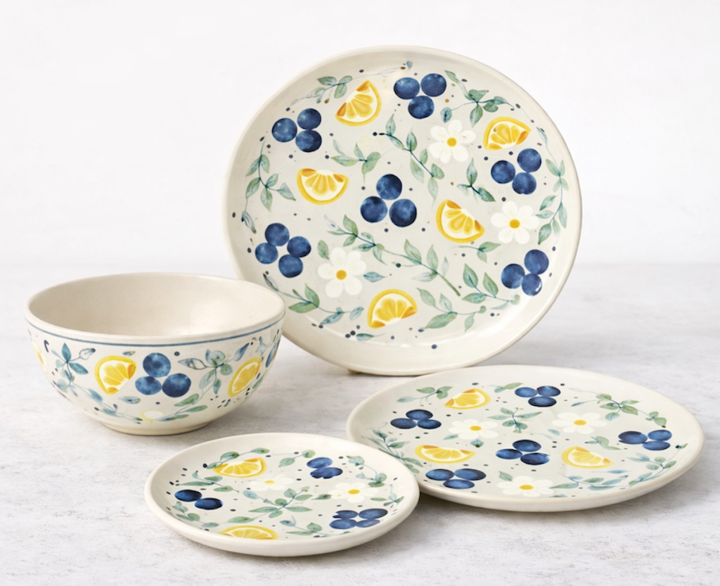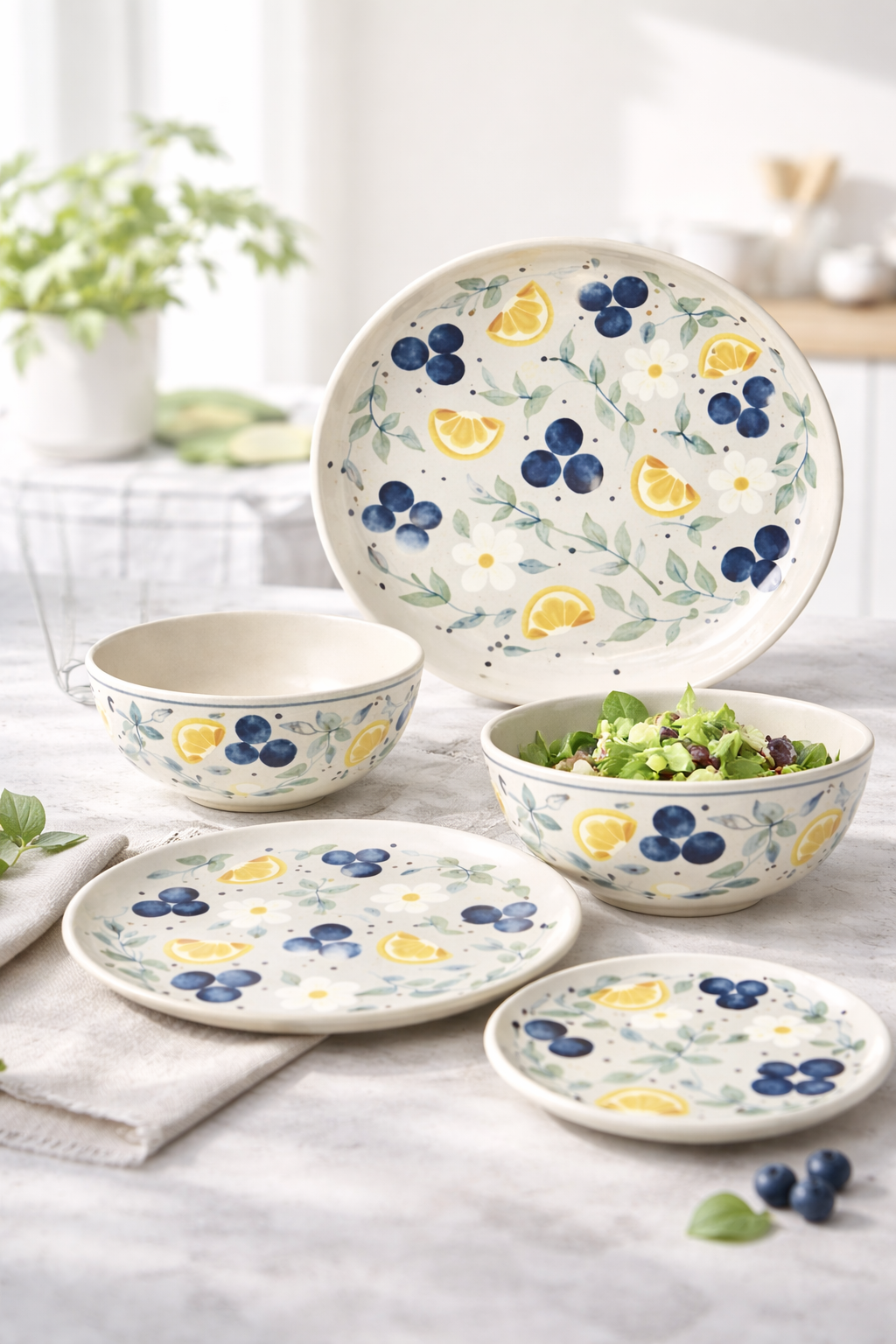Hand-painted style fruit and floral design adds a light, seasonal touch to everyday dining.