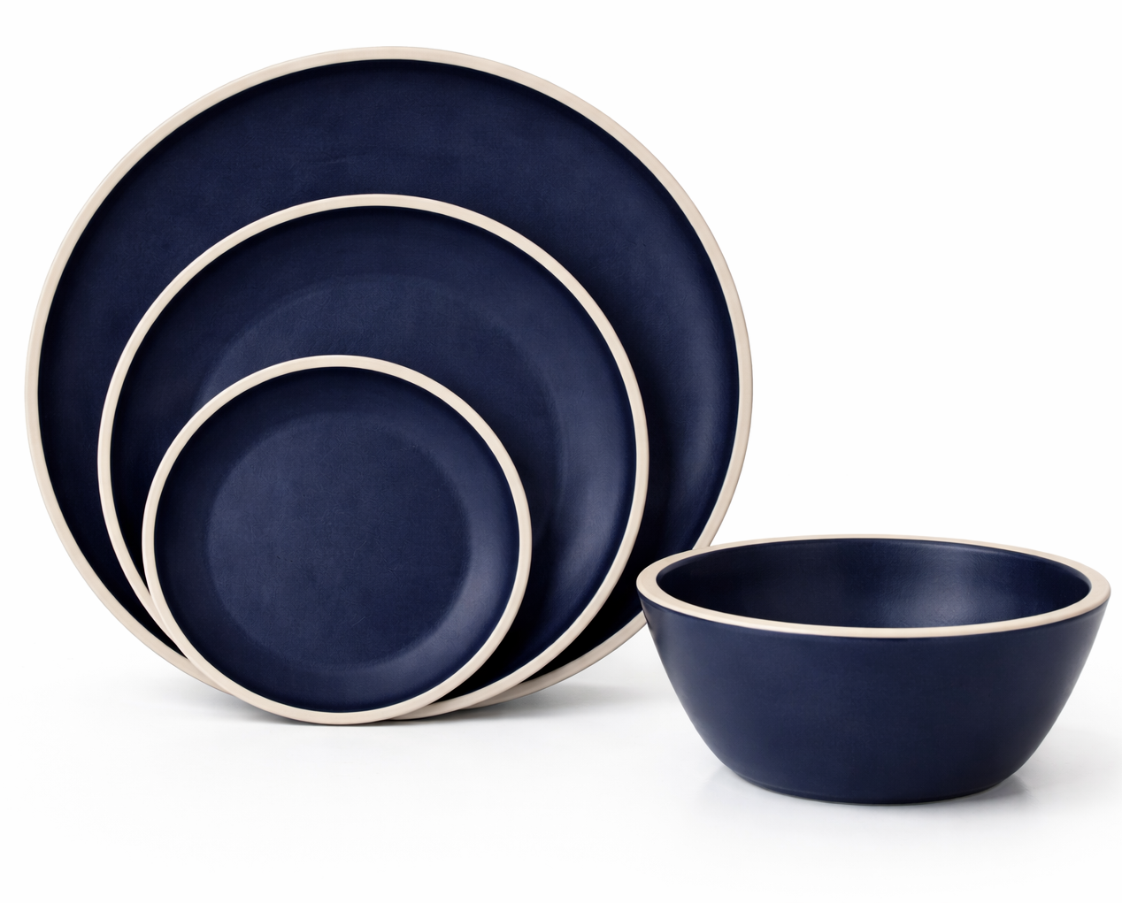Deep navy blue finish with a clean, contrasting rim delivers a modern yet timeless look that suits both casual meals and special occasions.