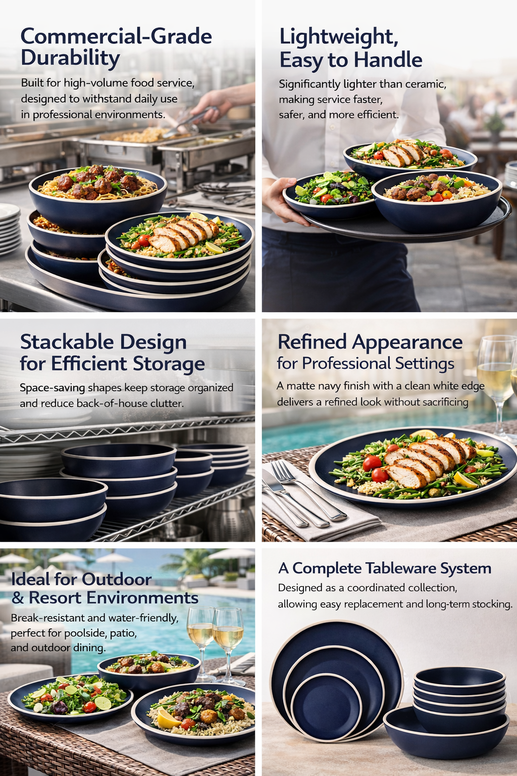Made from high-quality melamine that resists chipping and breaking—ideal for everyday use, families, kids, and outdoor dining.