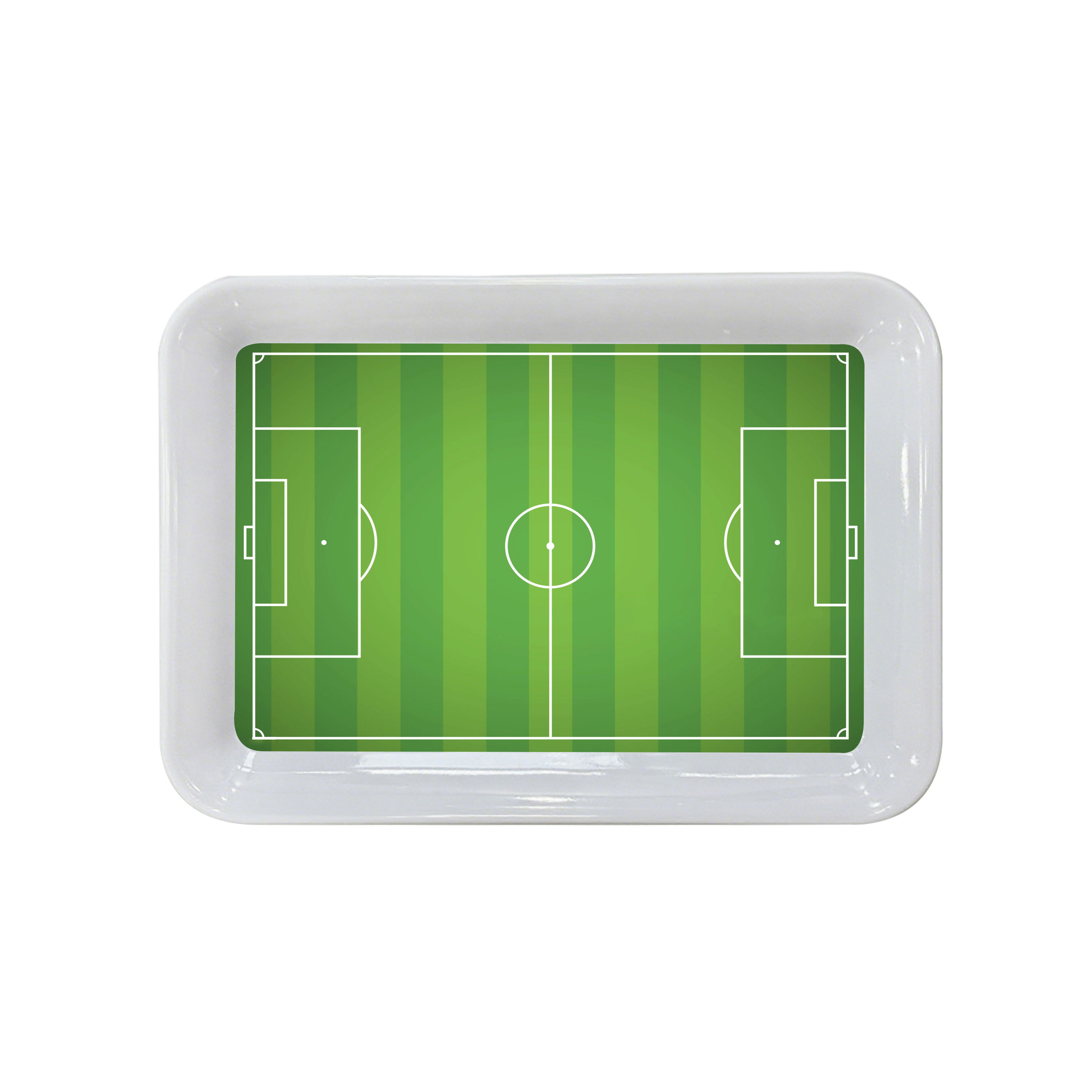 Serve snacks in sporty style with this Soccer Field 14 Inch Melamine Serving Tray. Featuring a classic green soccer field design, this tray adds fun, game-day energy to everyday use and sports-themed gatherings.