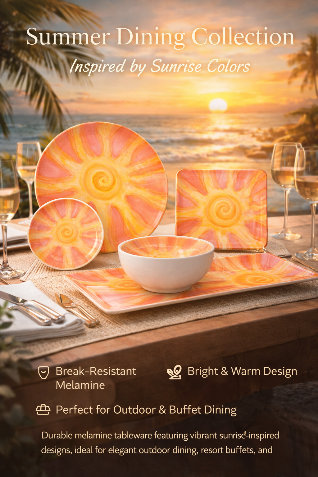 High-quality melamine resists breaking and chipping, ideal for everyday and outdoor use.