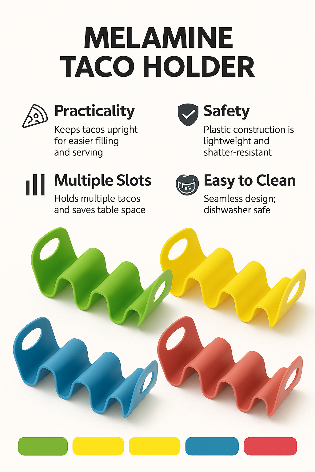 Practical Multi-Slot DesignHolds tacos upright for easy filling, serving, and eating.