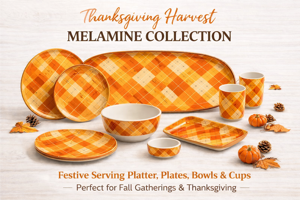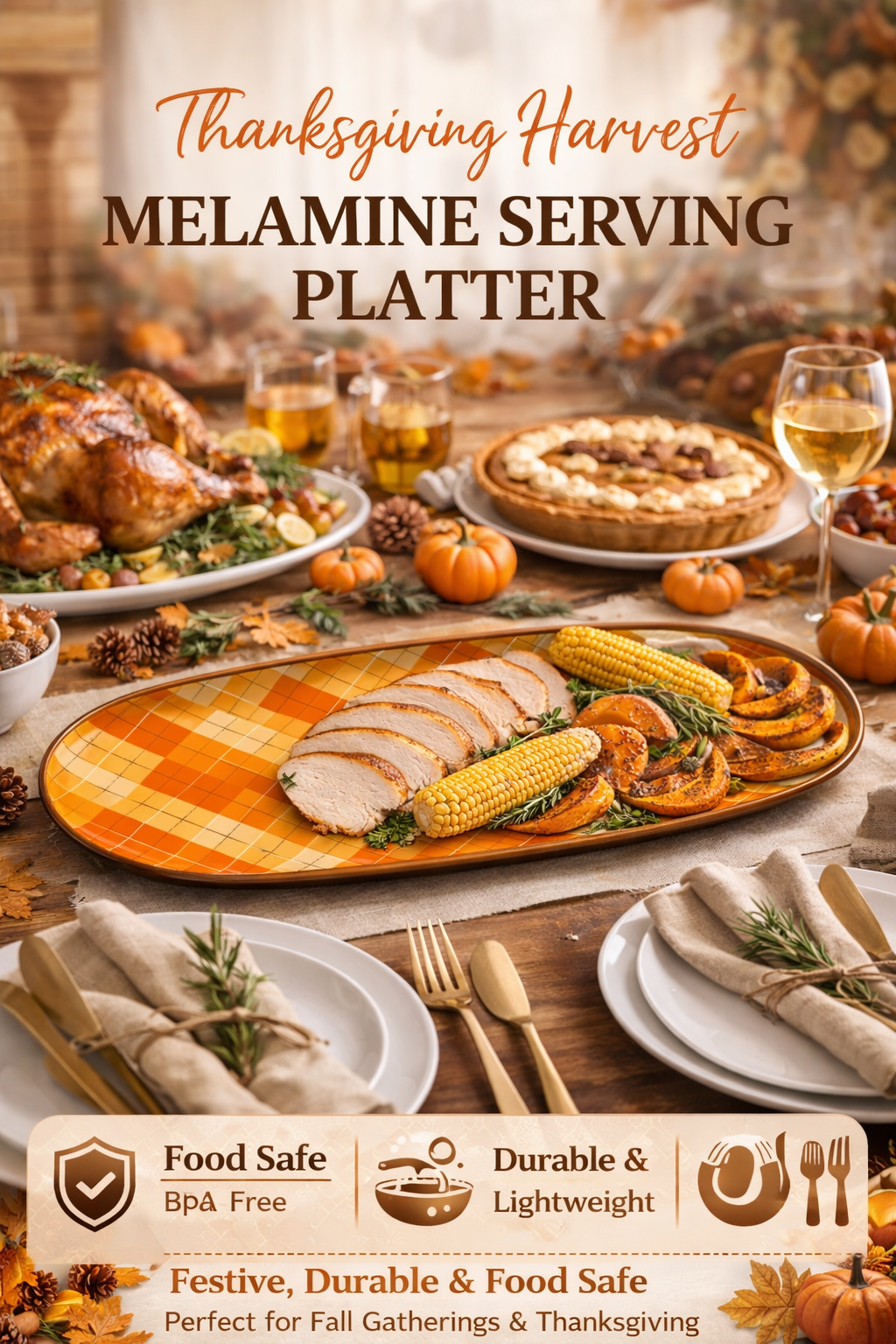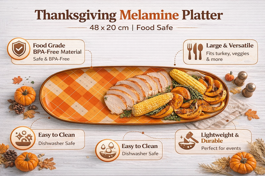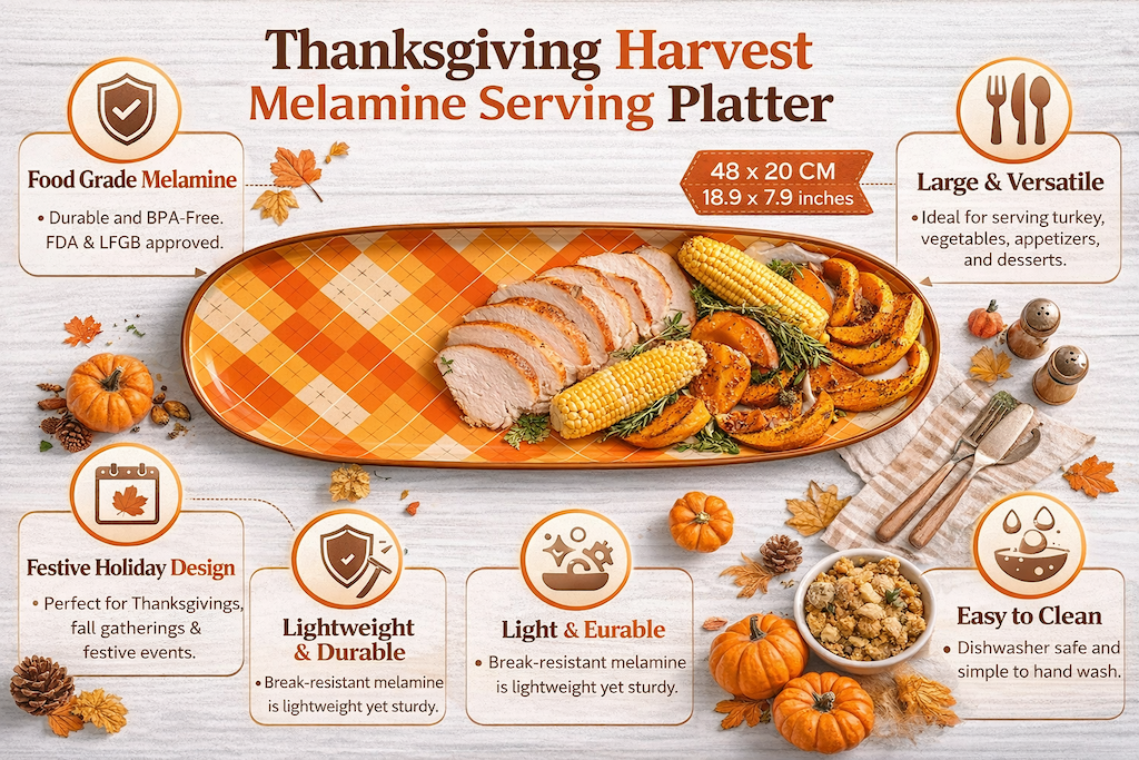 Ideal for retail assortments, import programs, and wholesale thanksgiving melamine platter orders.