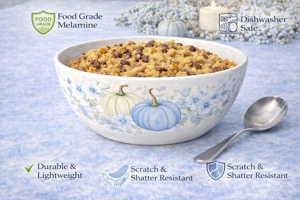 Thanksgiving Pumpkin Floral 10 Inch Bowl Thanksgiving Melamine Dinnerware