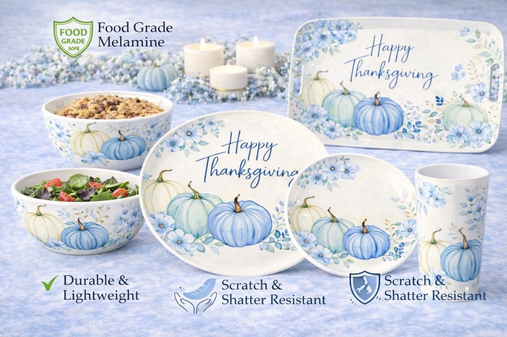 Thanksgiving Melamine Dinnerware with pumpkin floral design