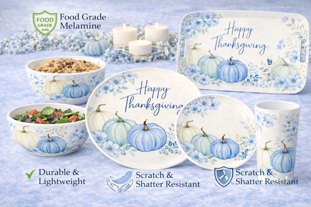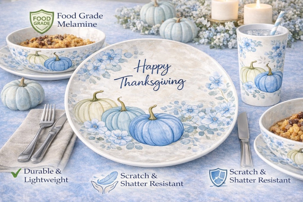 Thanksgiving Melamine Dinnerware with pumpkin floral design