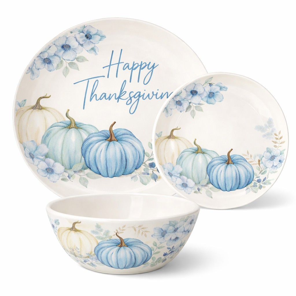 Thanksgiving Pumpkin Floral 3-Piece Thanksgiving Melamine Dinnerware