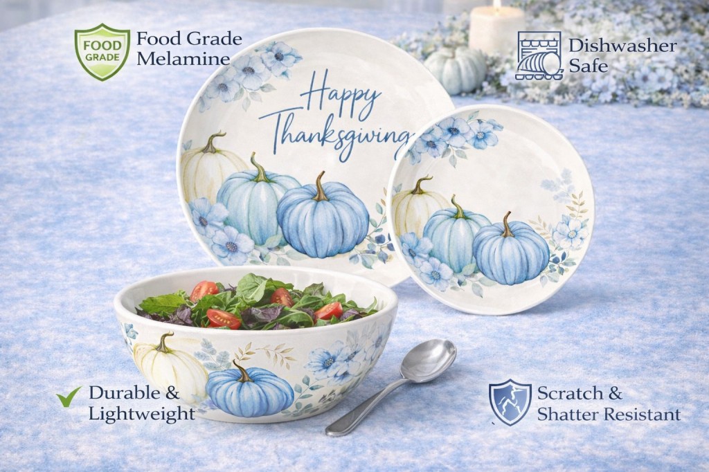 Thanksgiving Melamine Dinnerware with pumpkin floral design