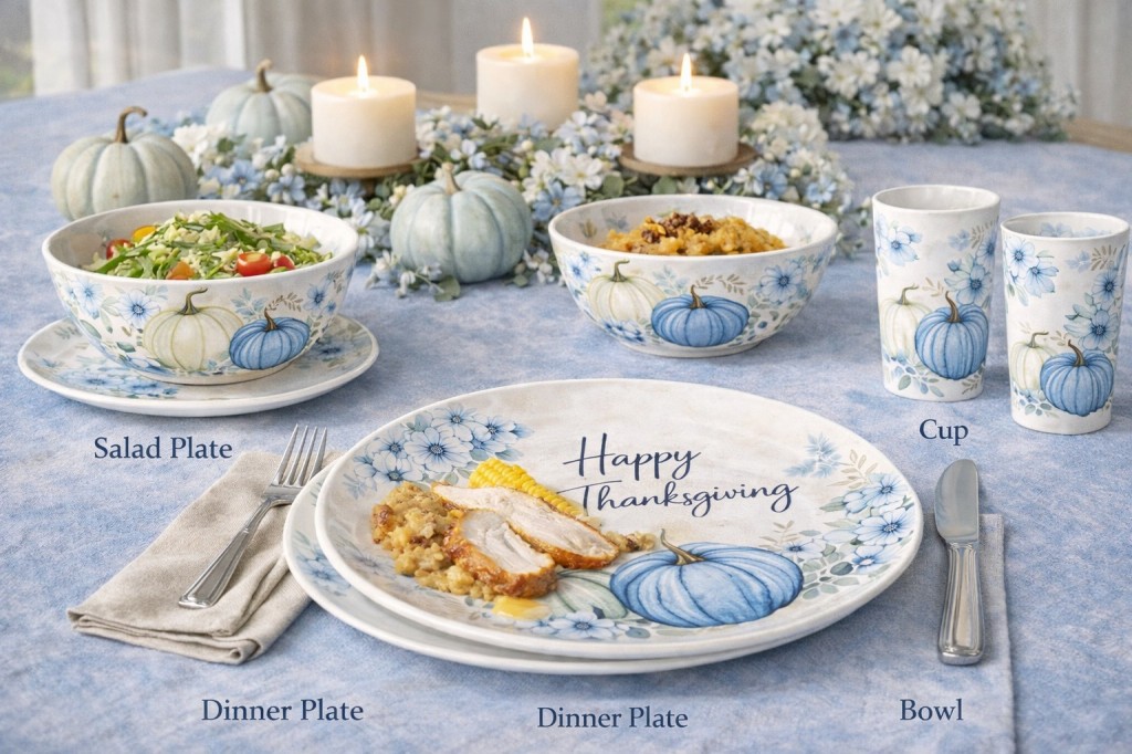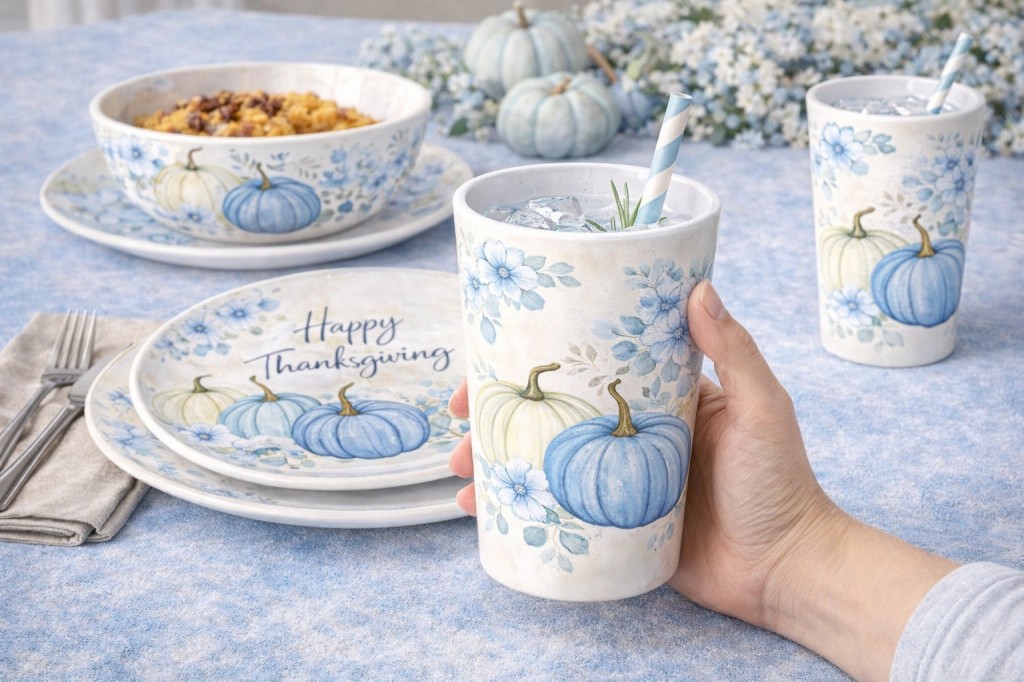 Thanksgiving Melamine Dinnerware cup with pumpkin floral design