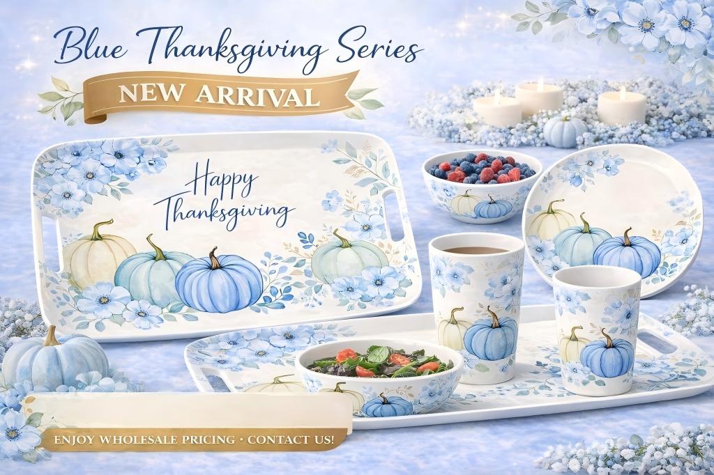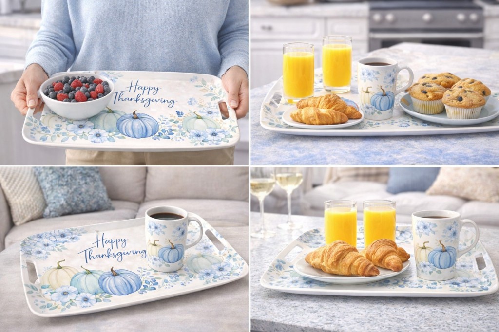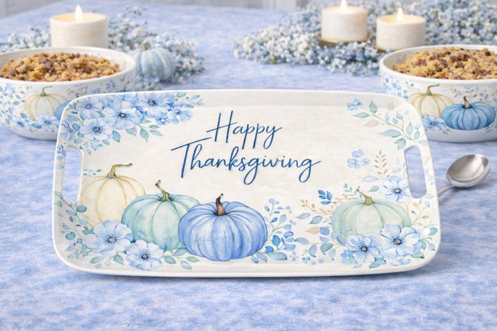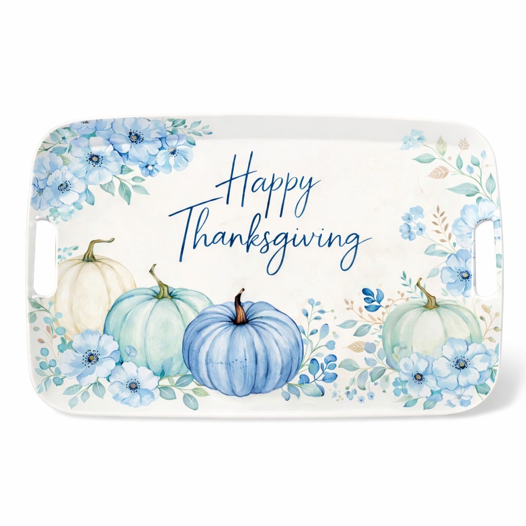 Thanksgiving Melamine Dinnerware serving tray with pumpkin floral design