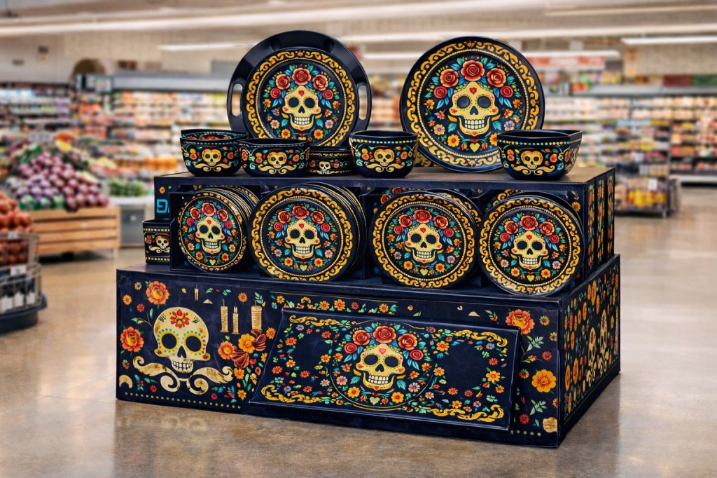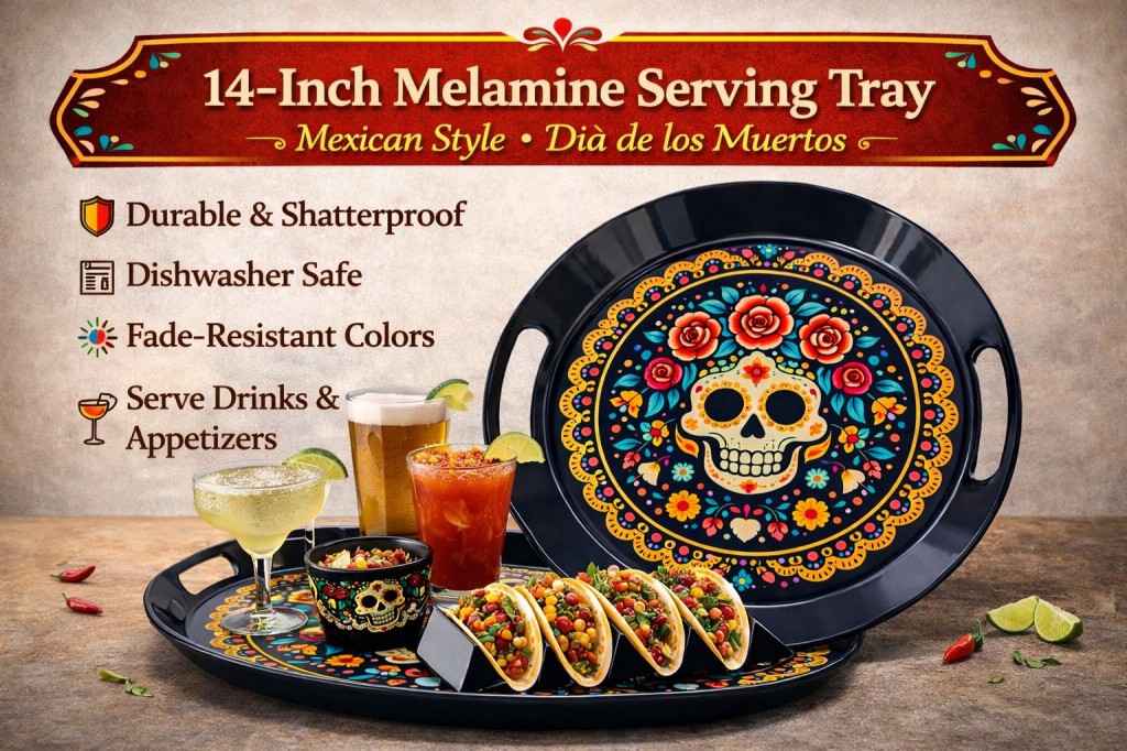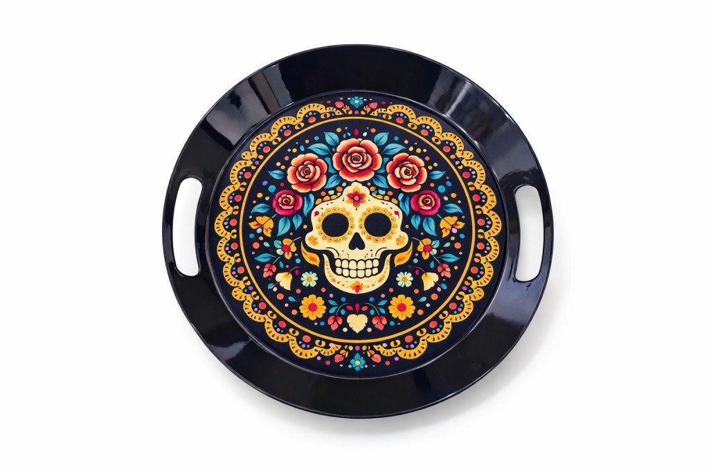 Dia de los Muertos Sugar Skull Round Melamine Serving Tray