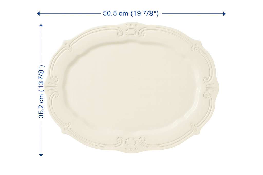 With a refined vintage rim and durable melamine build, this platter offers both elegance and practicality.
