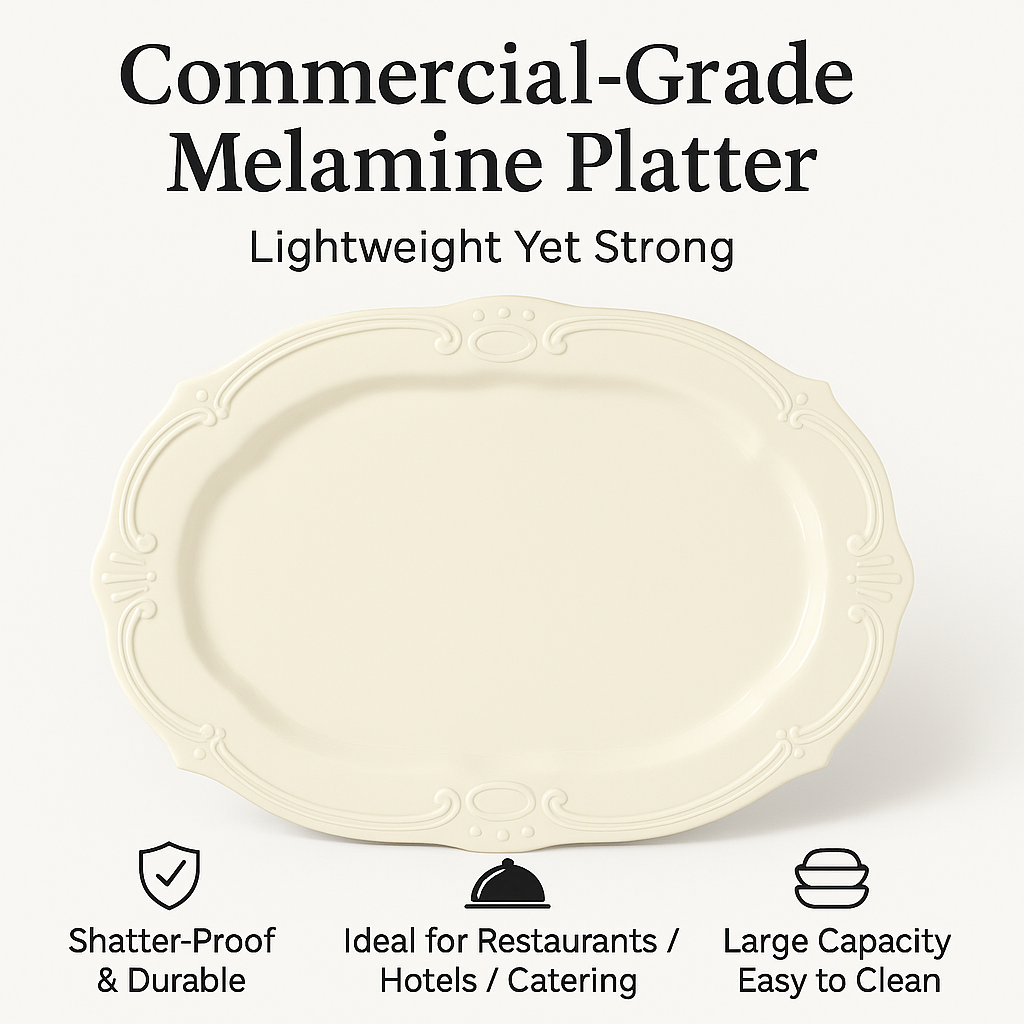 Premium melamine oval serving platter designed for luxury hospitality.