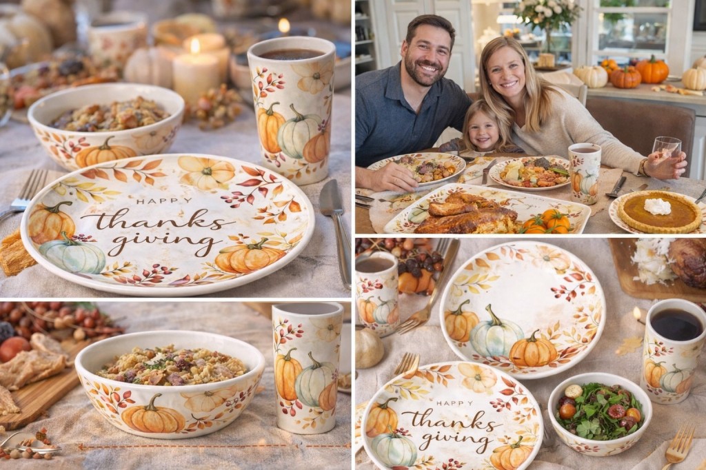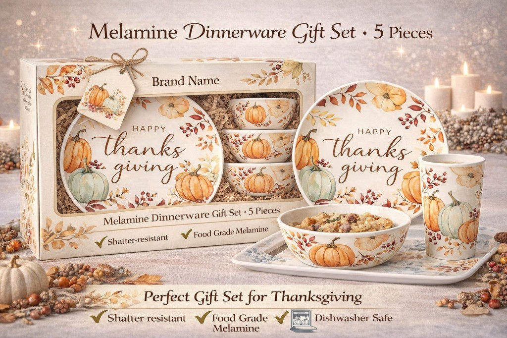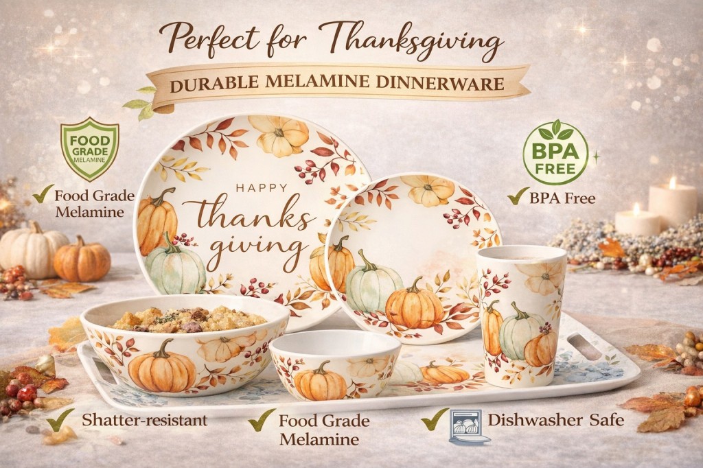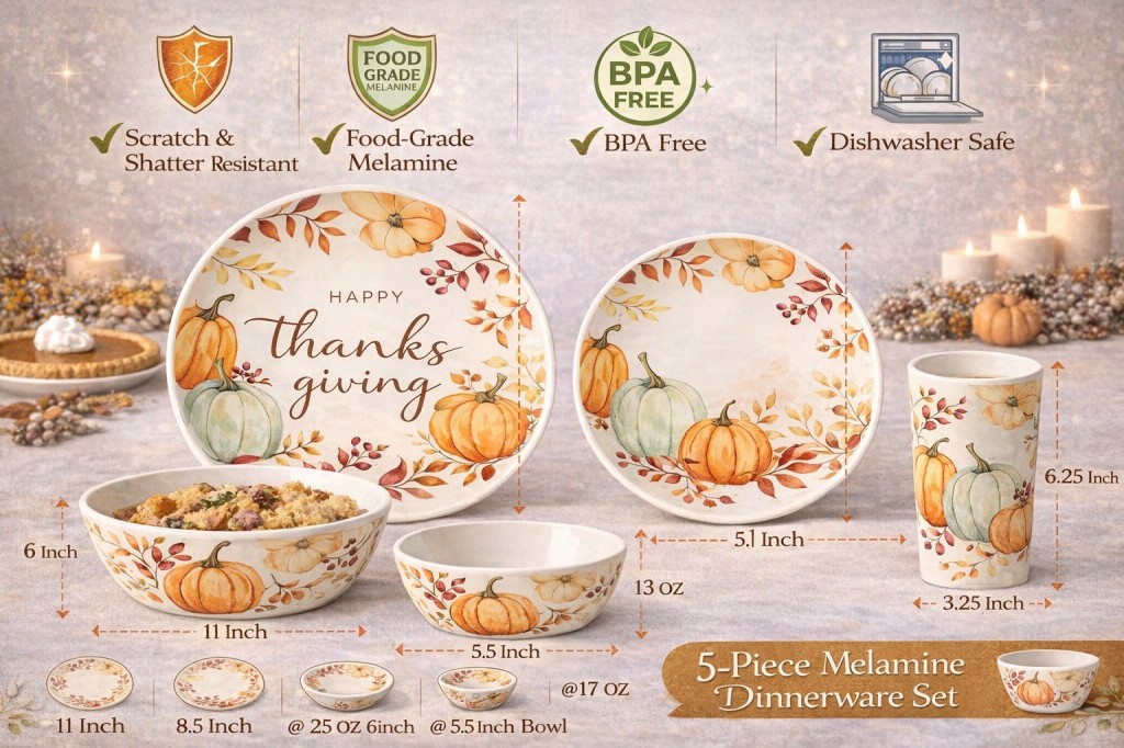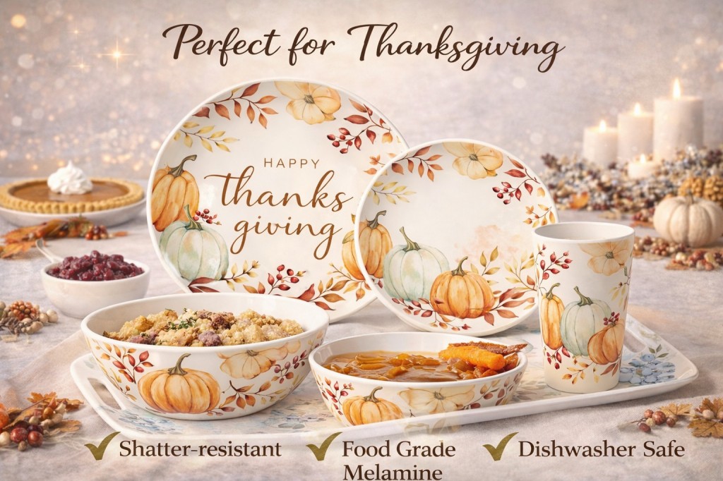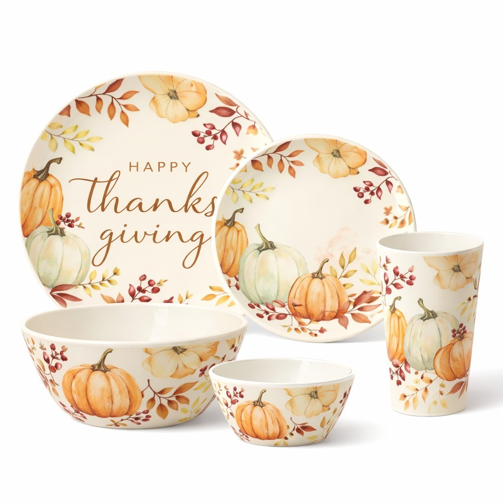 Melamine Dinnerware Set Pumpkin Thanksgiving Unbreakable