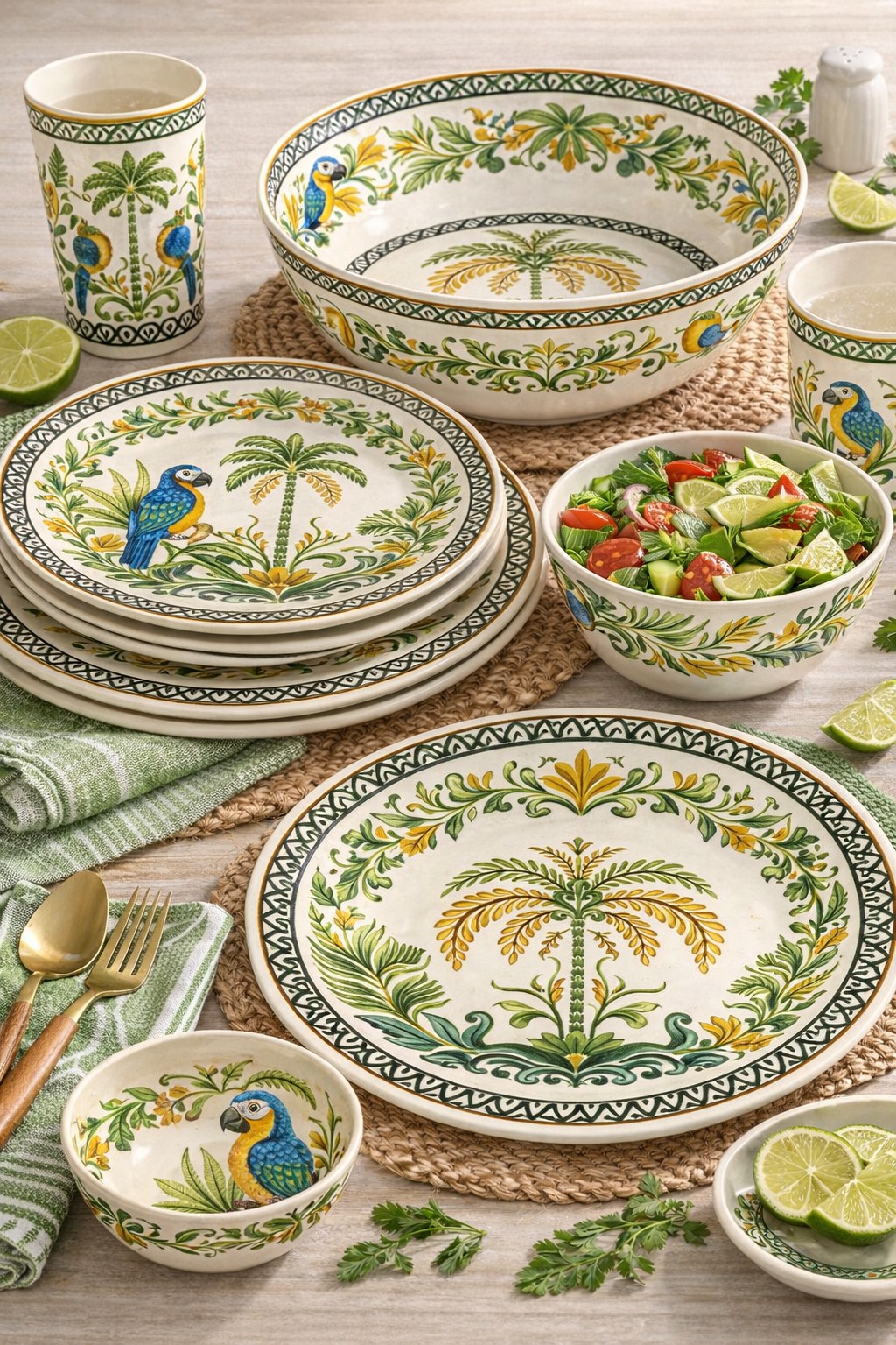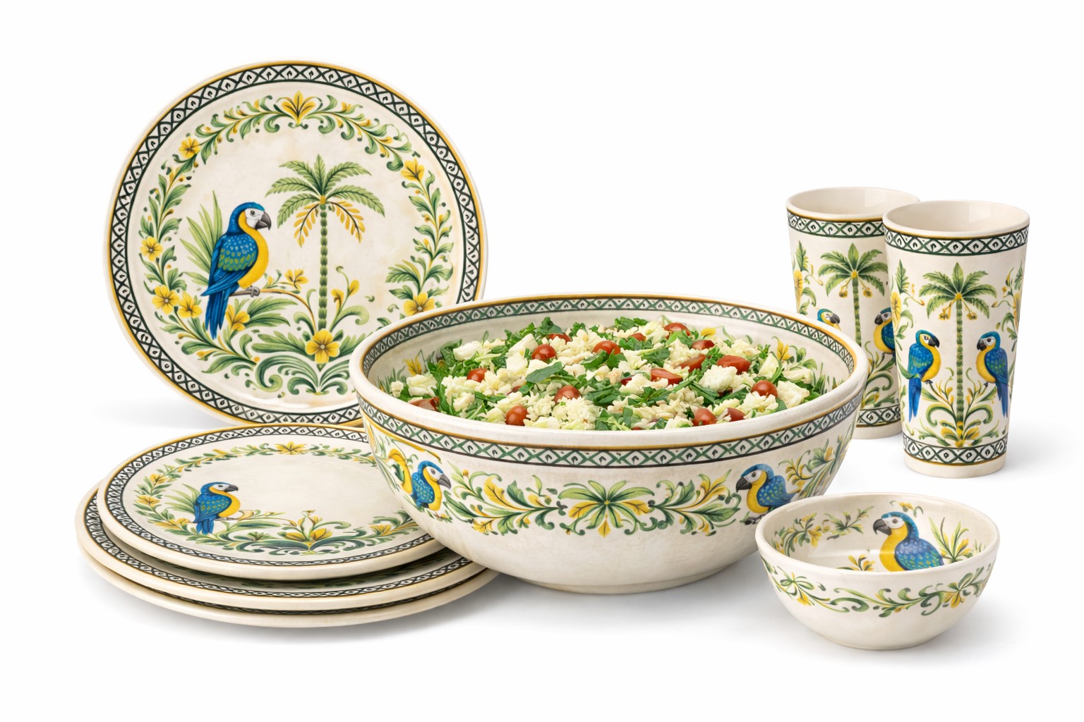 Design: Tropical parrot and palm tree pattern with stable decal printing technology