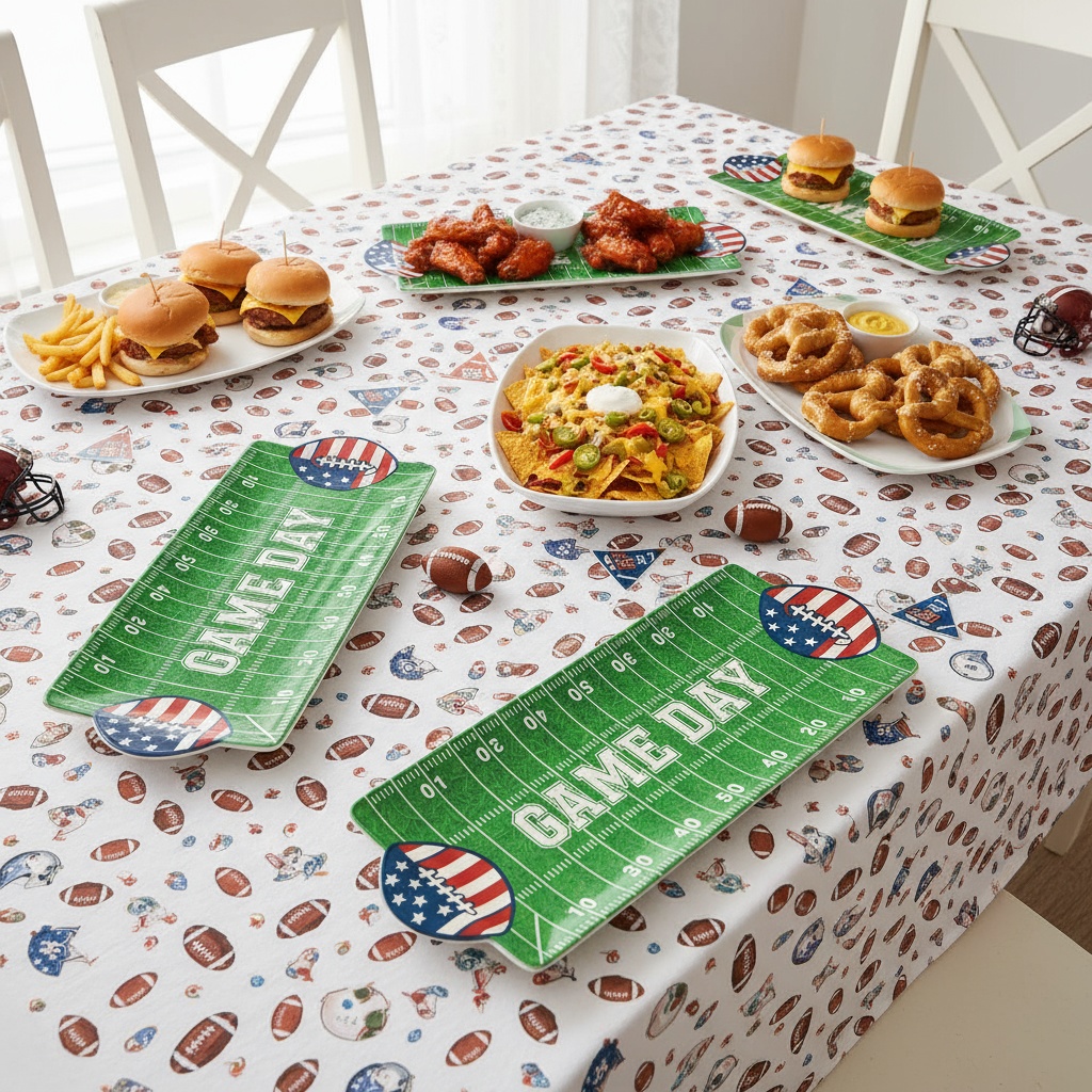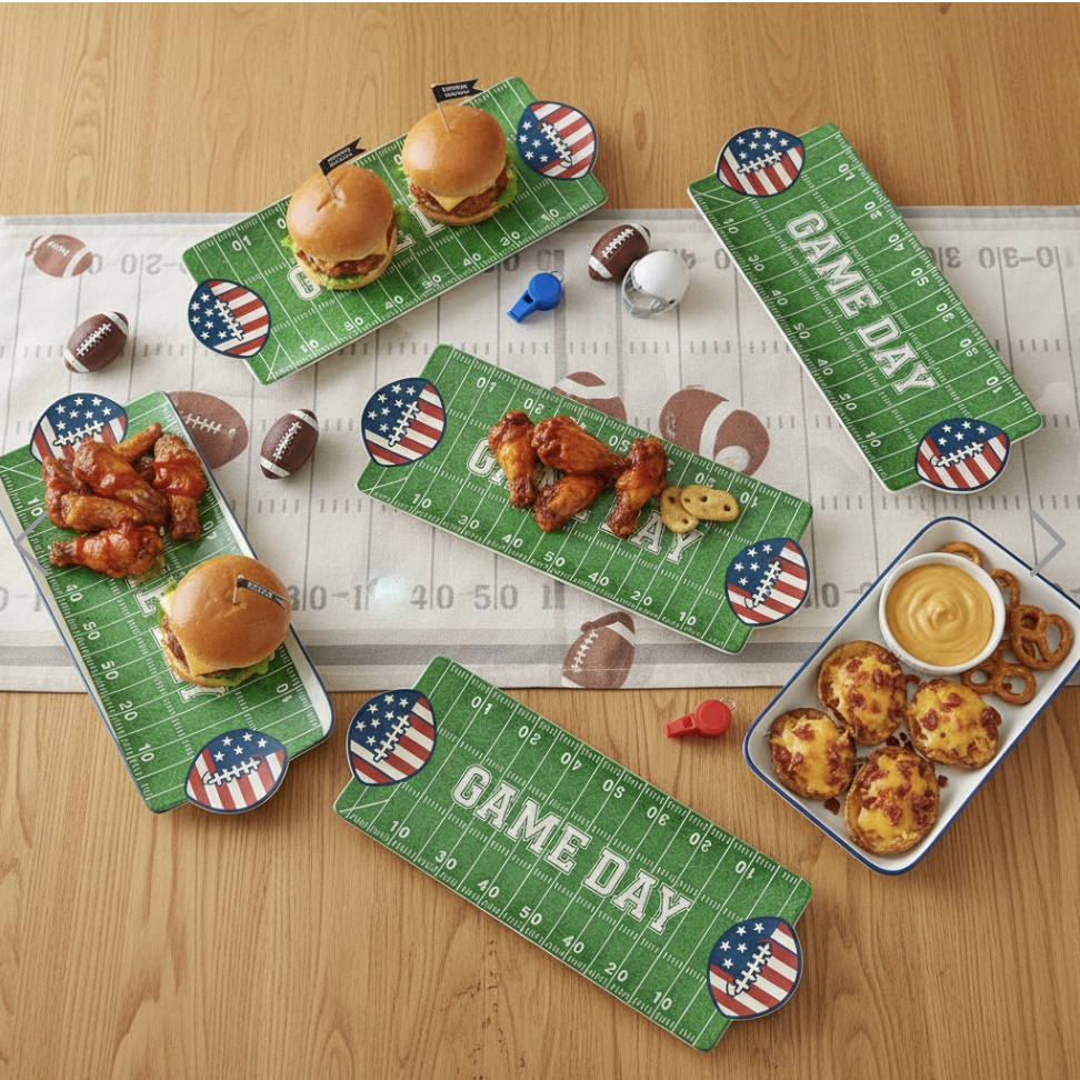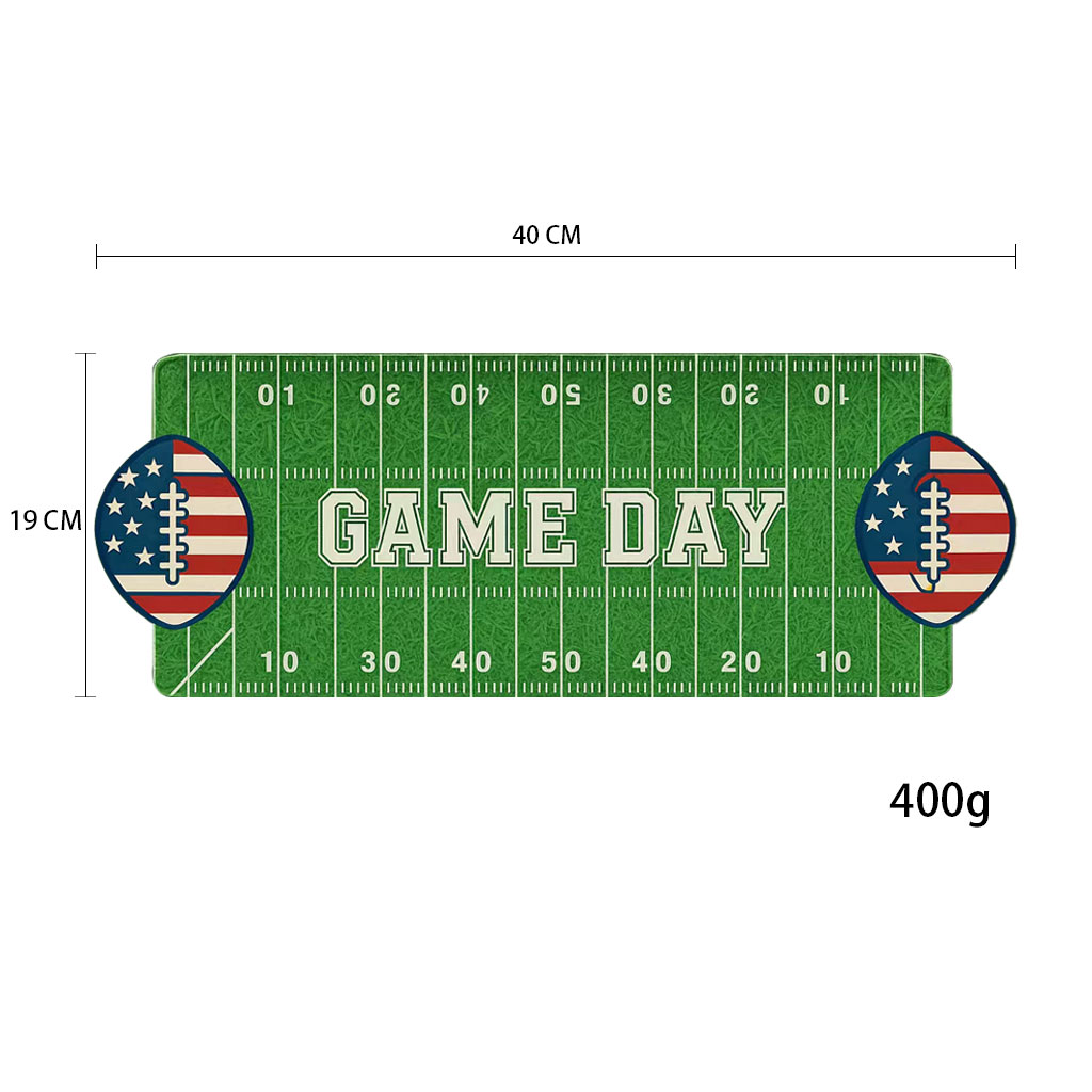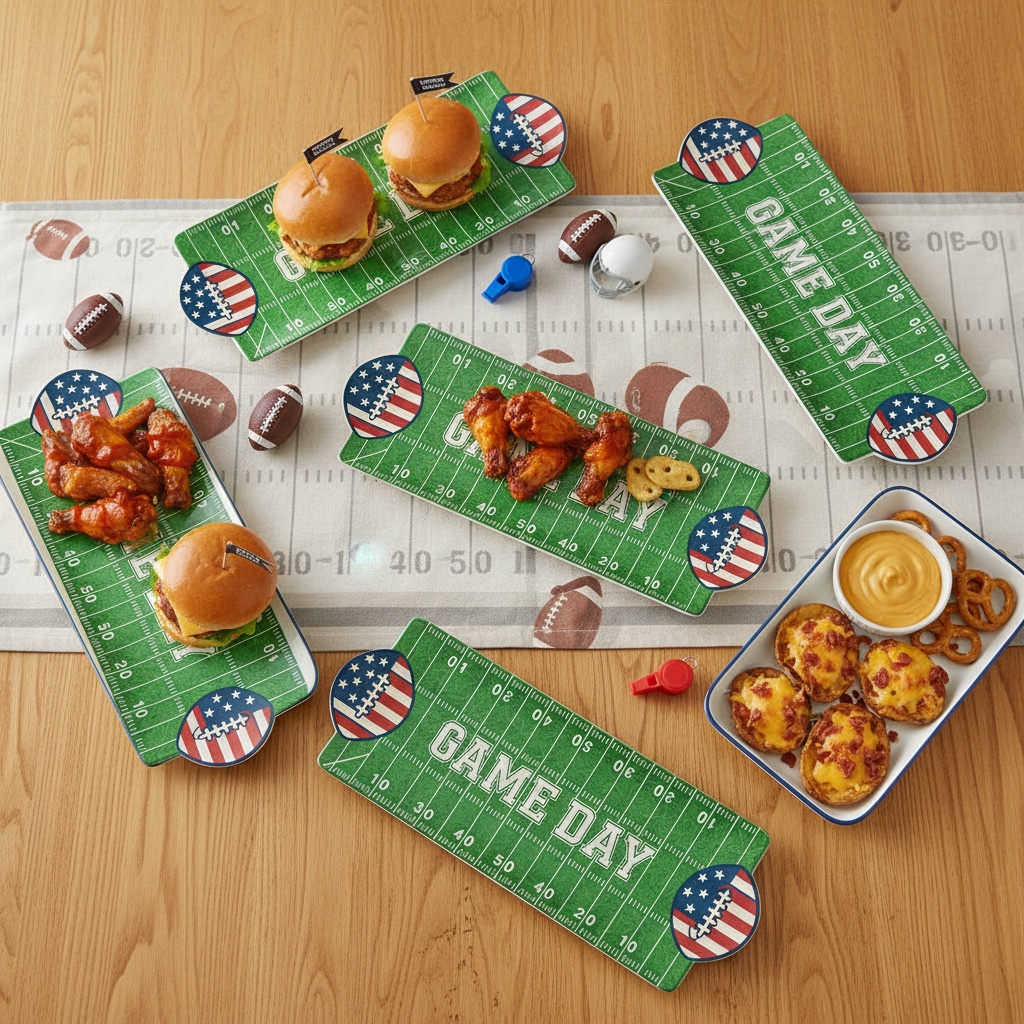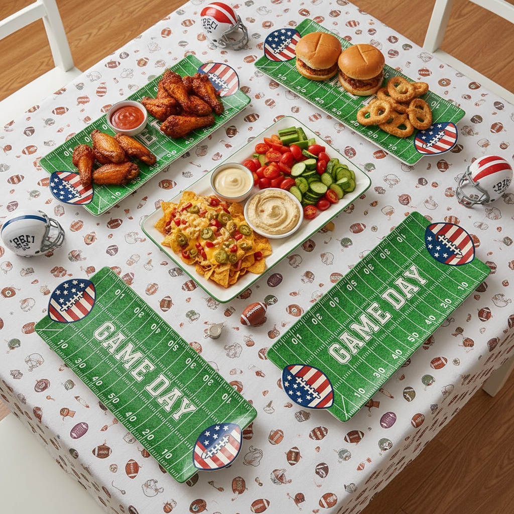 Celebrate football and patriotism with this melamine serving tray. Featuring a “Game Day” field design and American flag football graphics, it's the perfect addition to tailgates and sports parties.
