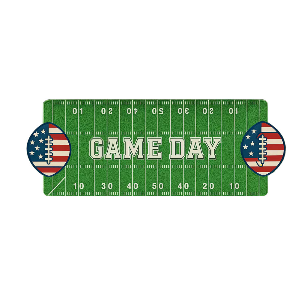 This eye-catching melamine tray features a green football field with “GAME DAY” text and USA flag-inspired footballs on each end. Celebrate sports and patriotism at once with this durable and reusable tray.