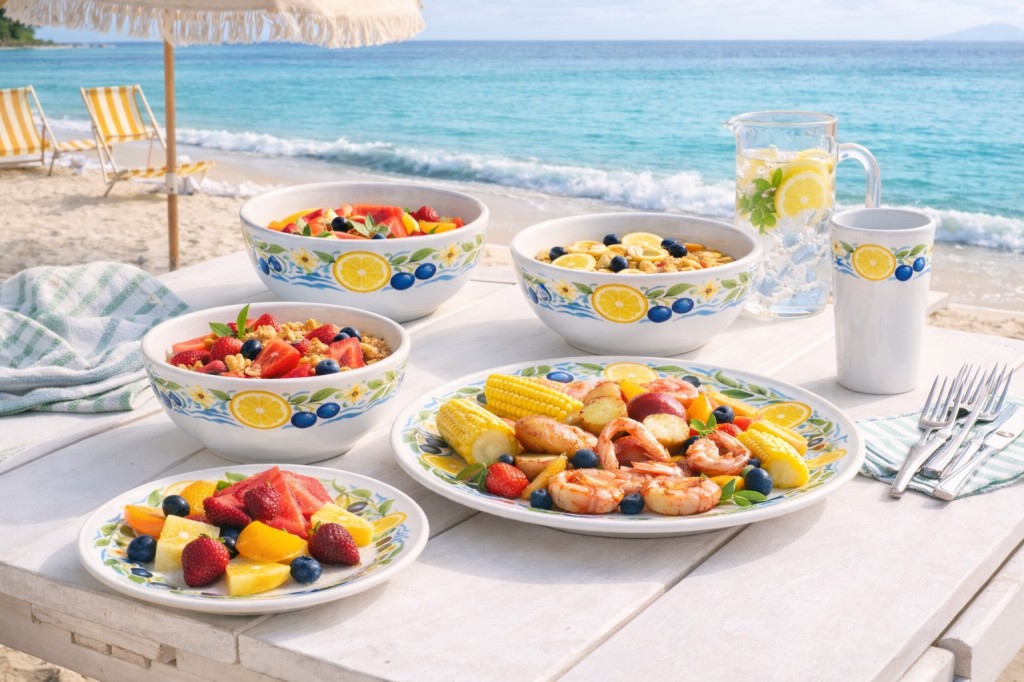 Fresh lemon fruit pattern enhances table presentation