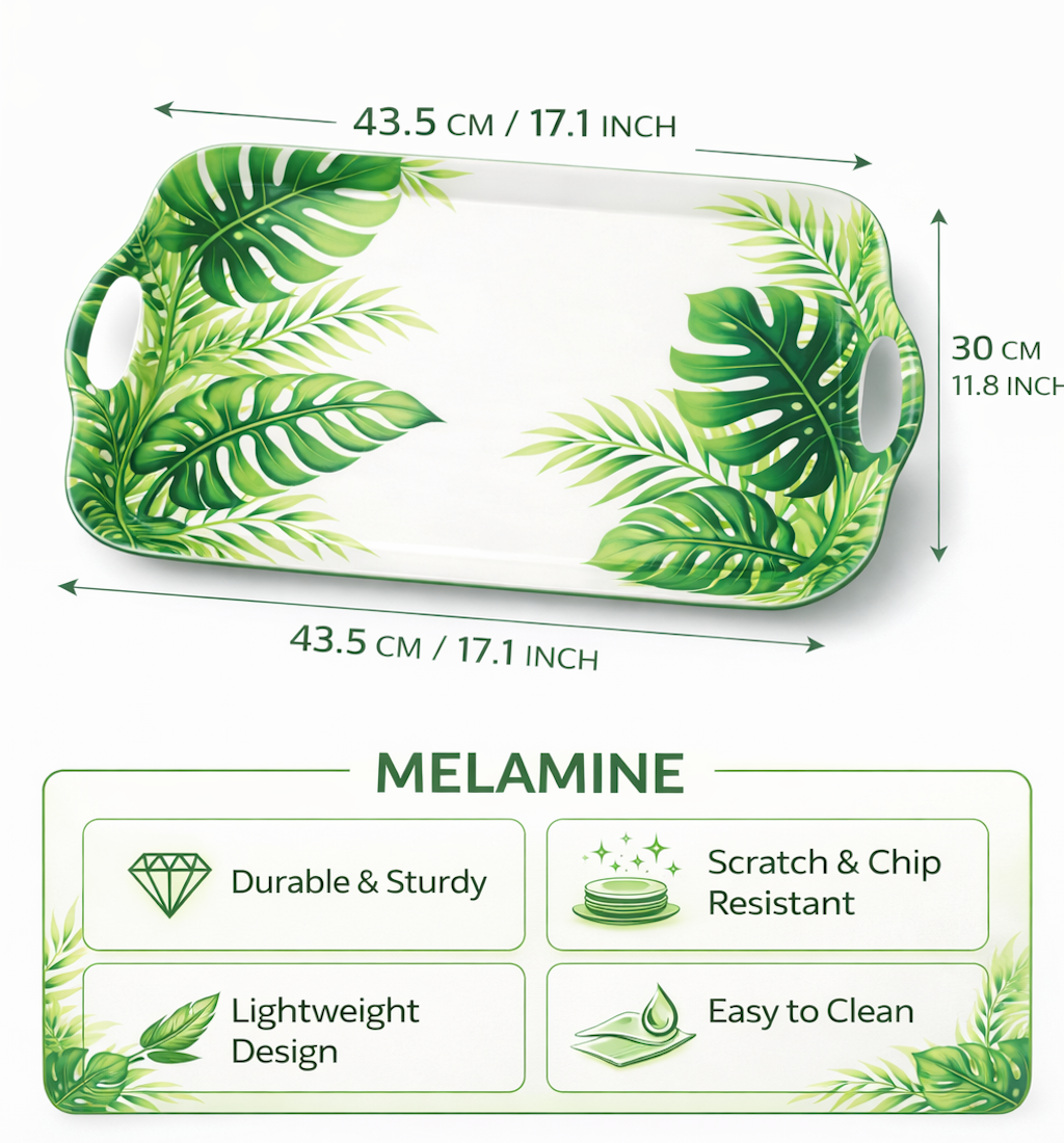Easy to carry as a melamine serving tray with handles, lightweight and practical.