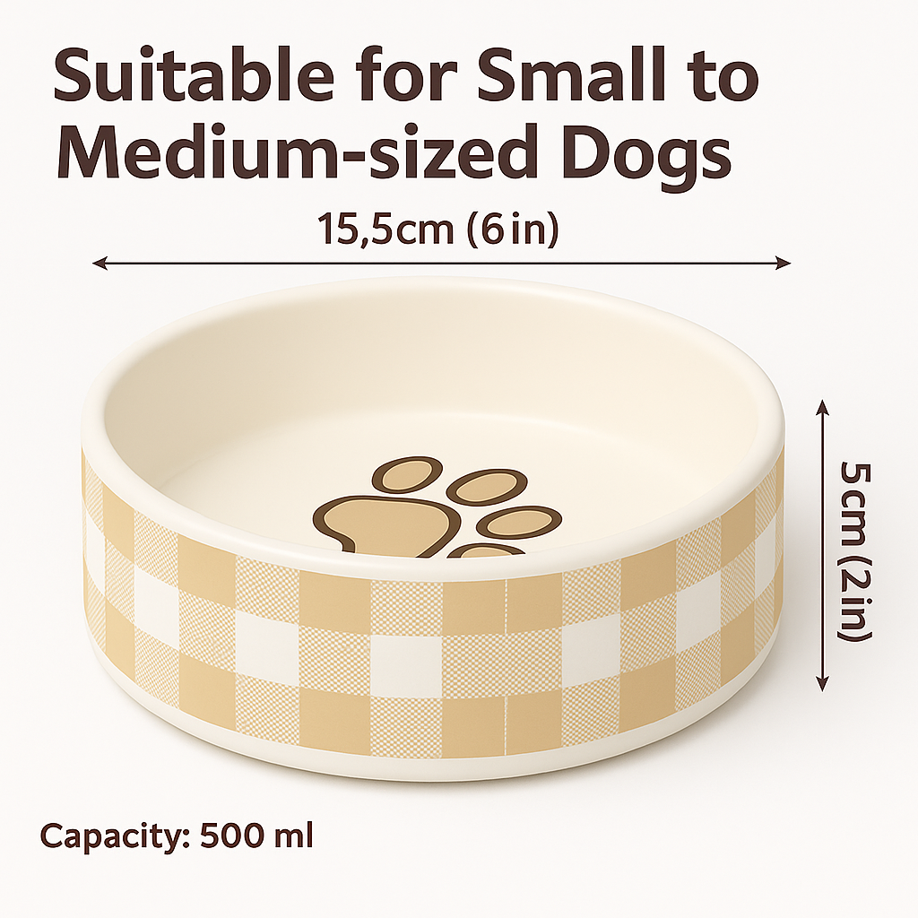 500ml capacity, 15.5cm (6in) diameter, and 5cm (2in) height – ideal for kibble, wet food, or water.