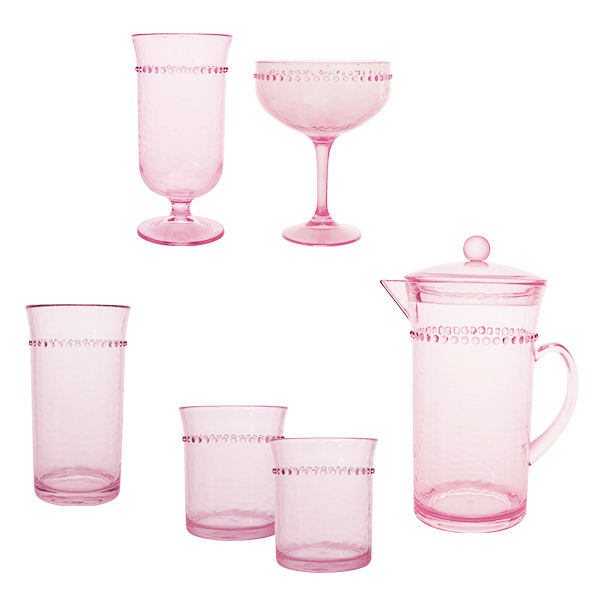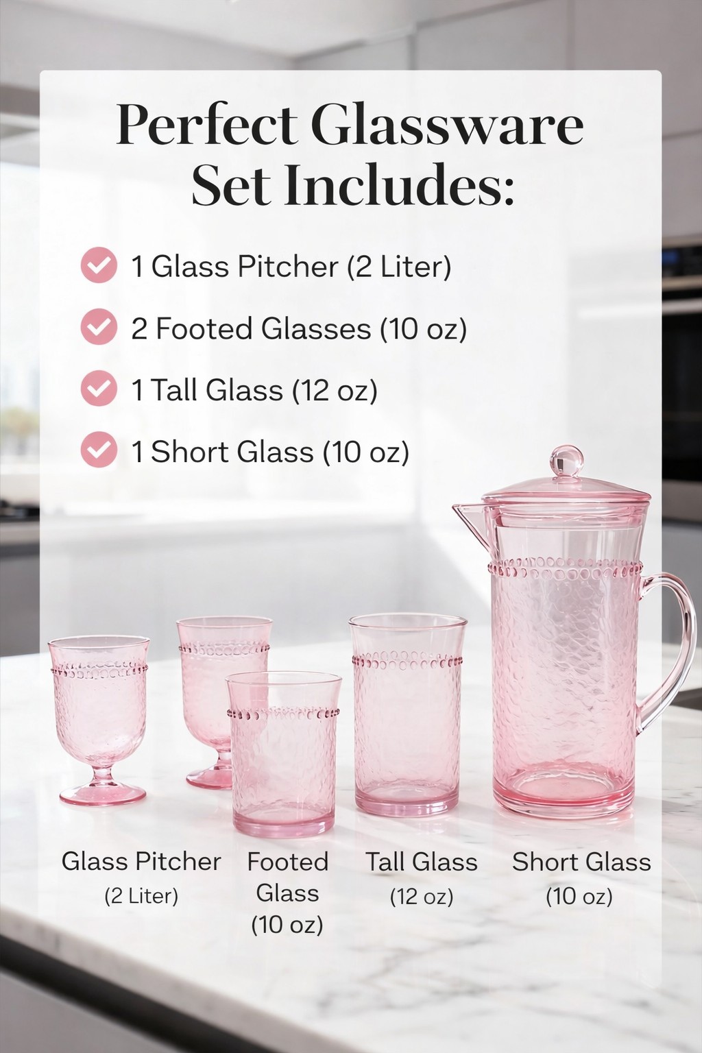 Set Includes: 1 pitcher with lid, 2 short tumblers, 1 highball glass, 1 wine goblet, 1 coupe glass