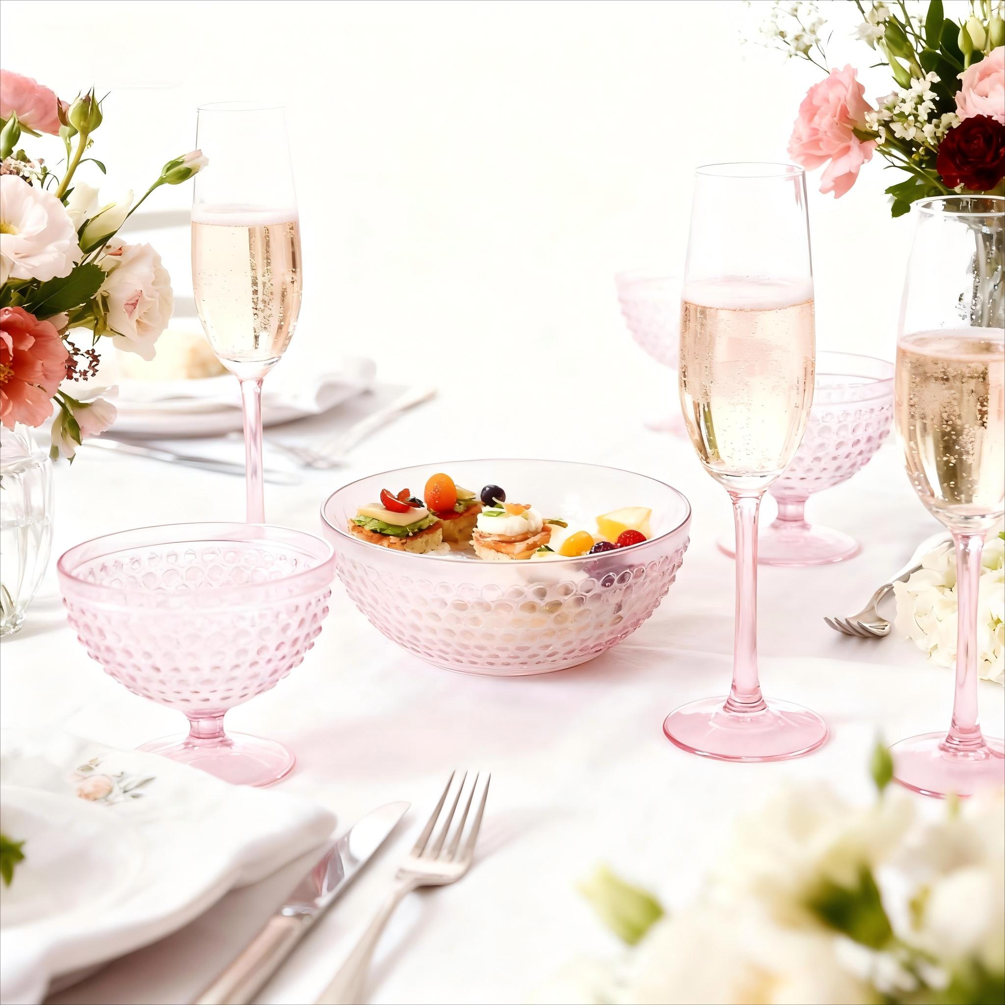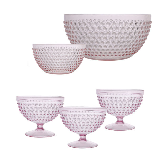 Set Includes: 1 large bowl, 1 medium bowl, 4 footed dessert bowls
