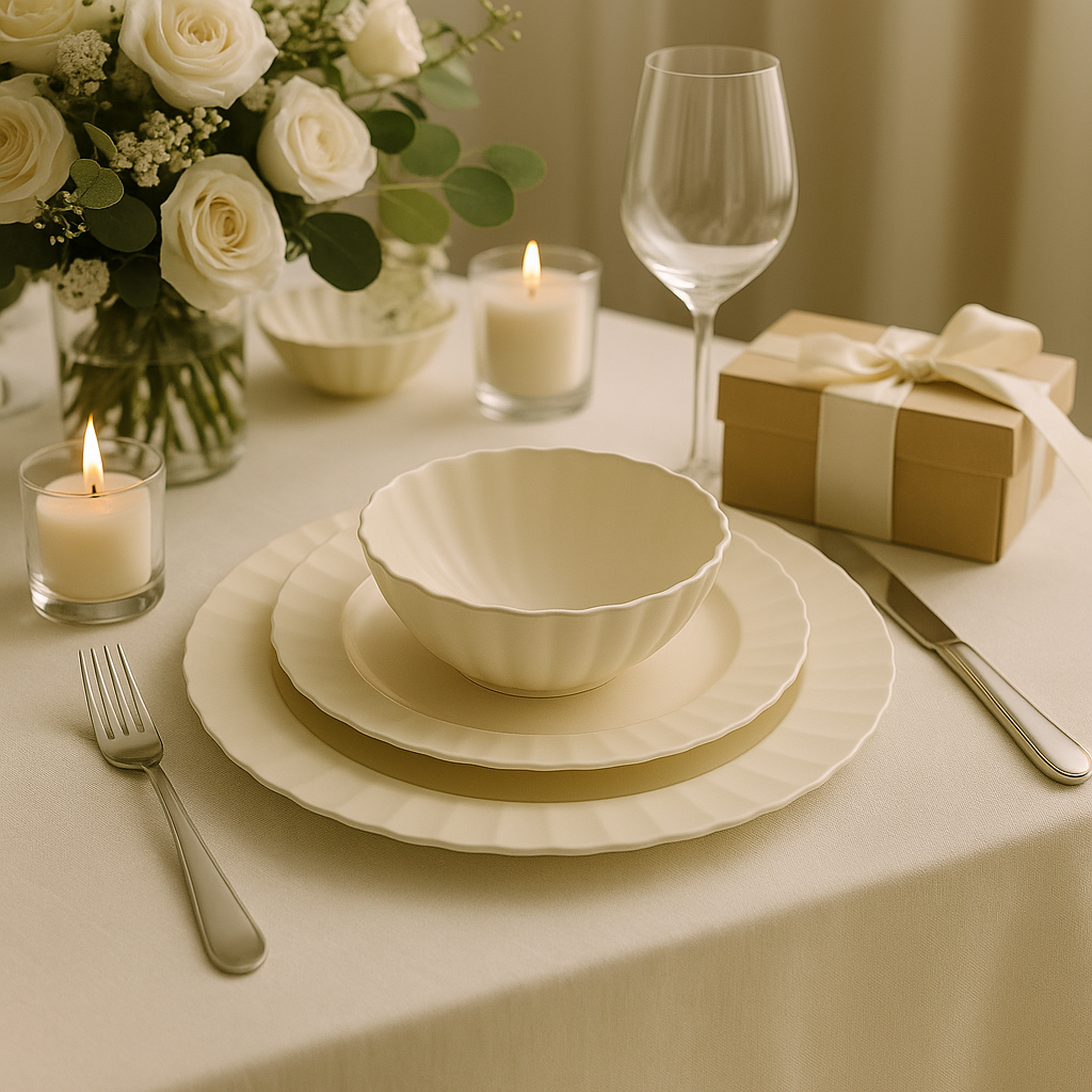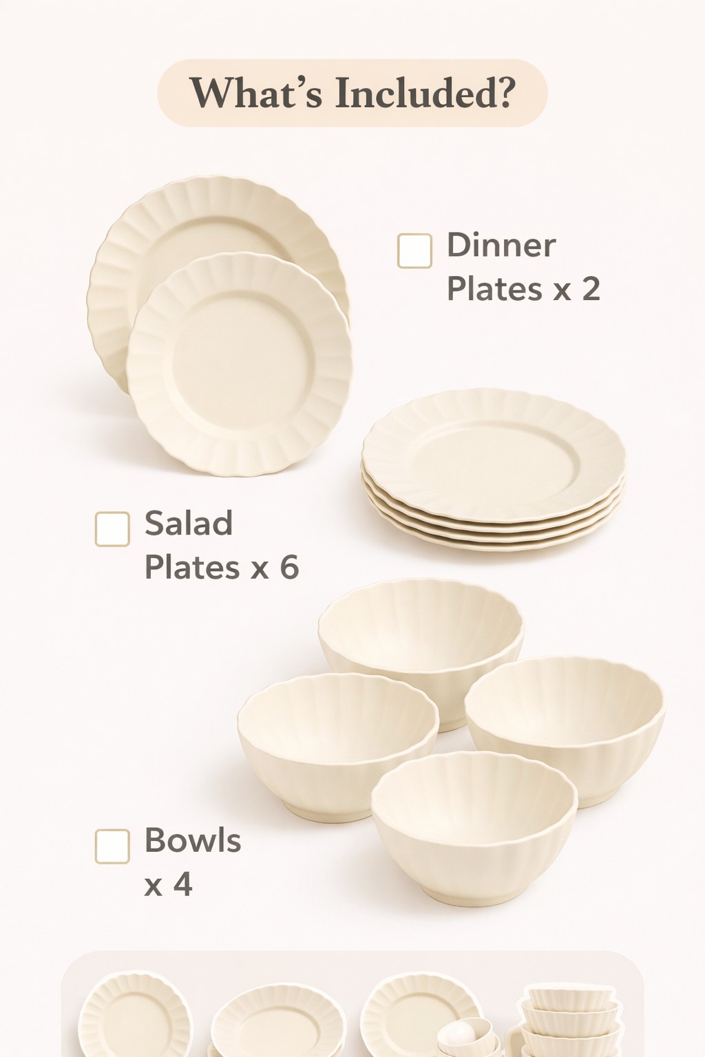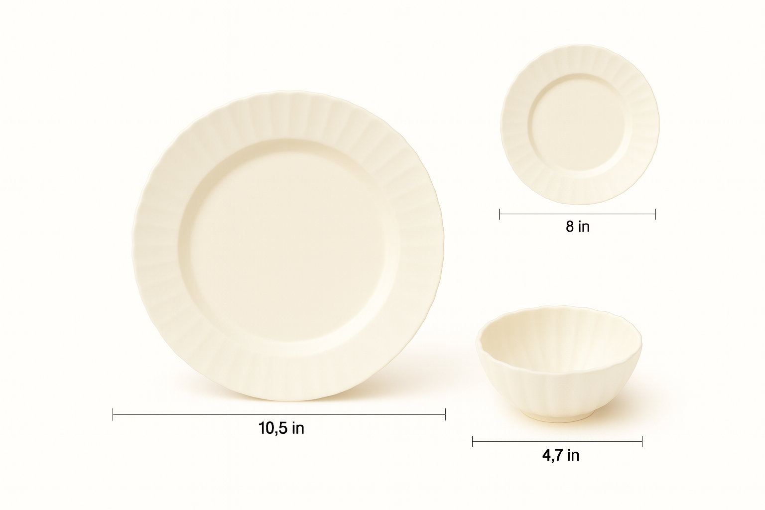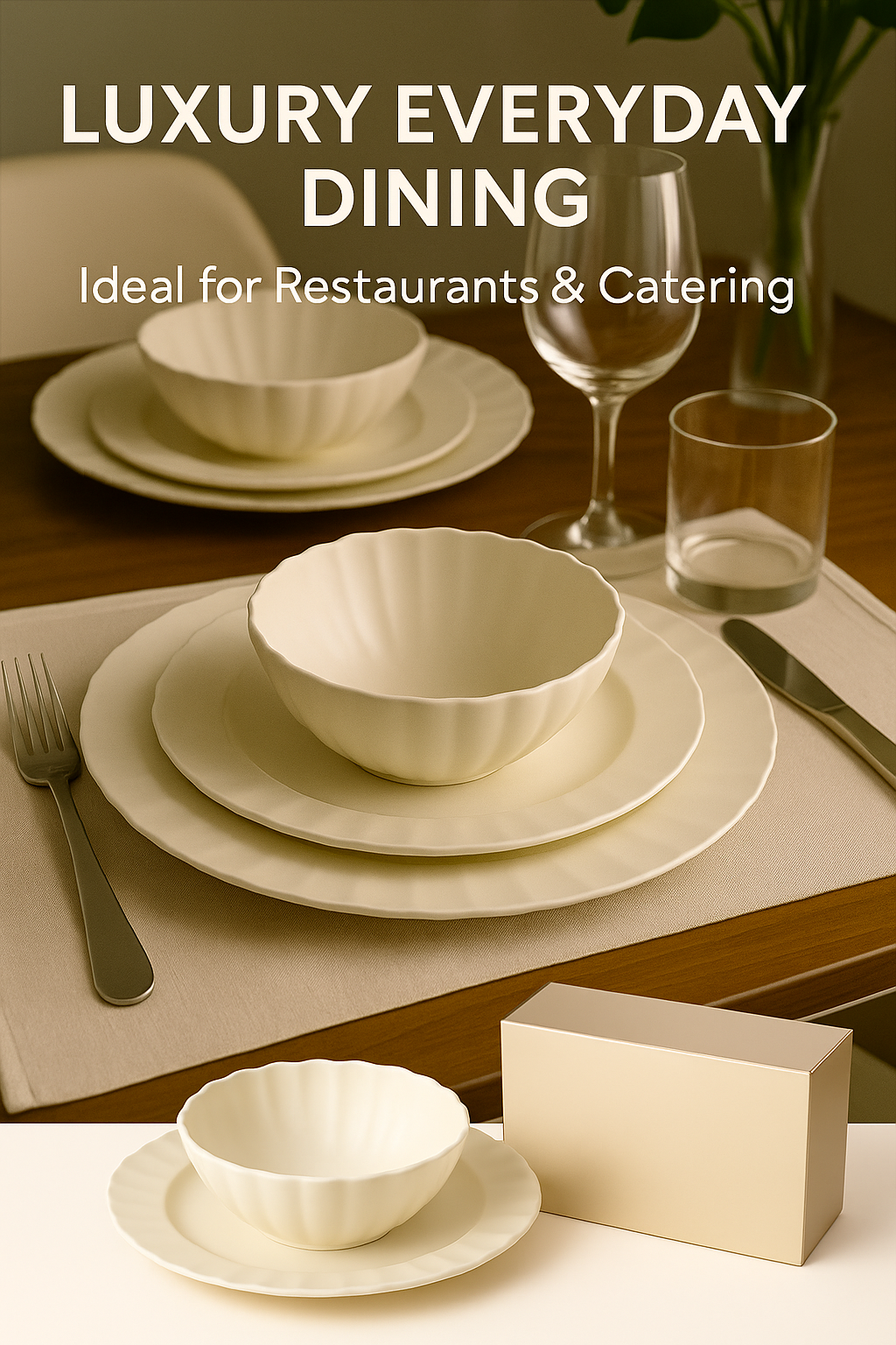 This 12 Pieces melamine dinnerware set features a minimalist ribbed edge design in an elegant cream white tone. Lightweight, durable, and shatter-resistant, it’s ideal for daily meals, outdoor dining, or commercial use. Perfect for family tables, restaurants, or cafes.