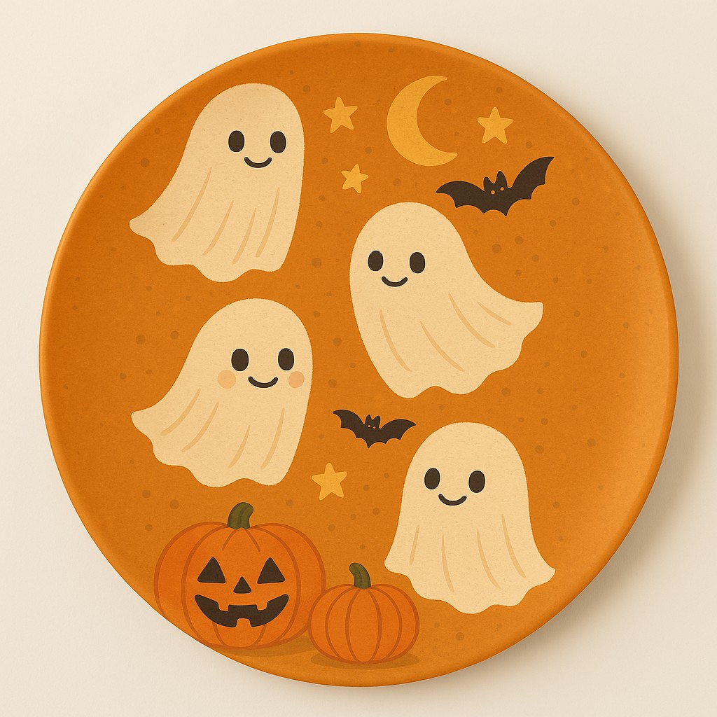 Design: Adorable ghosts, pumpkins, stars, bats, and moon