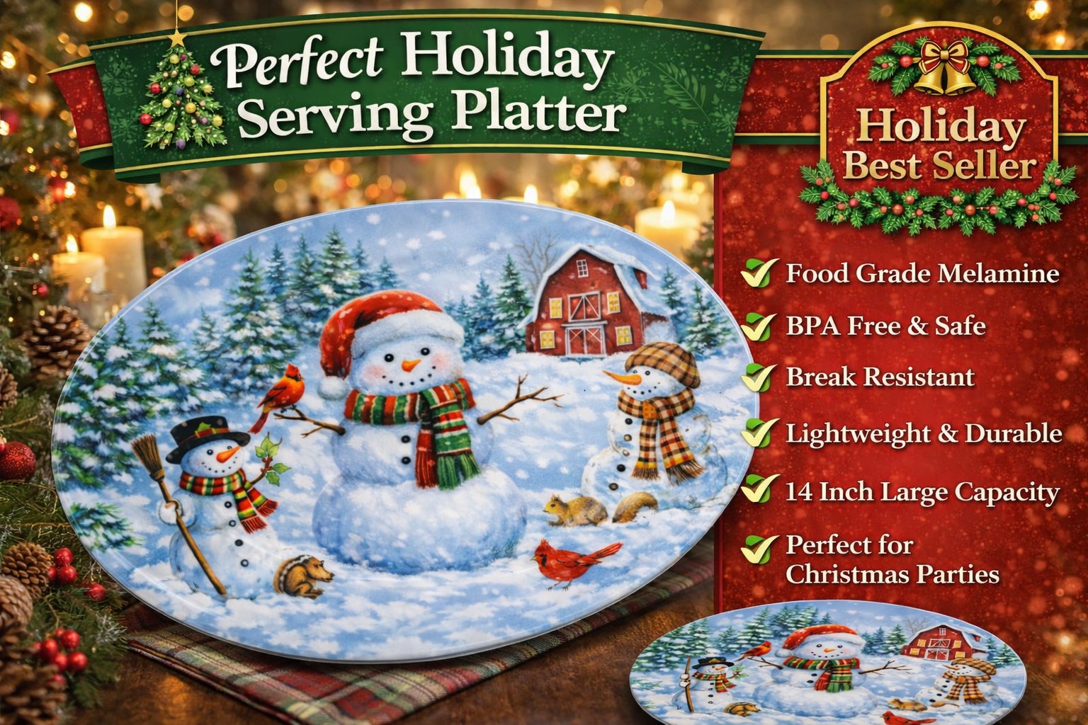 Ideal for serving turkey, desserts, snacks, and party platters.