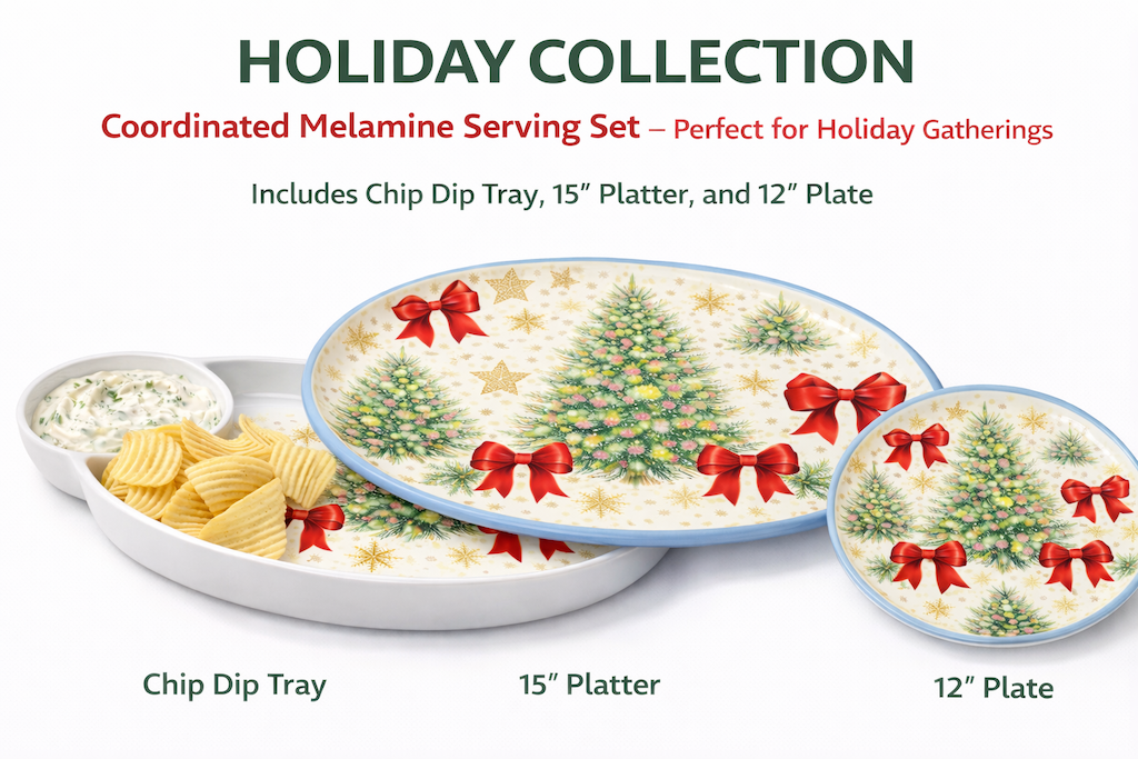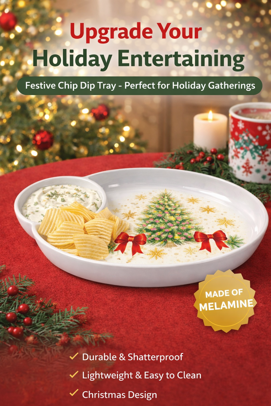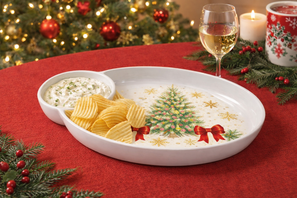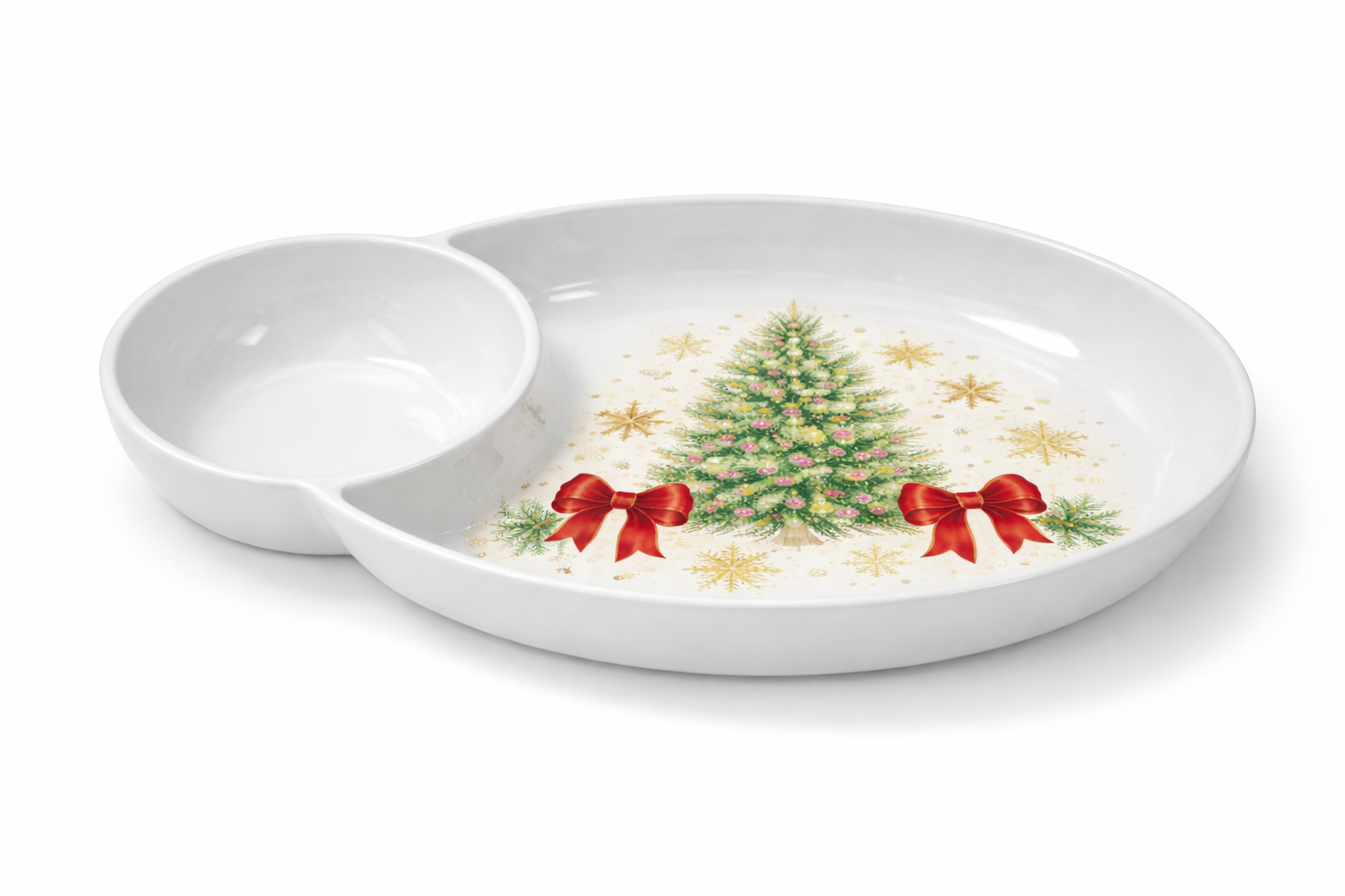 Festive Christmas DesignClassic holiday tree and ribbon motif for seasonal serving.