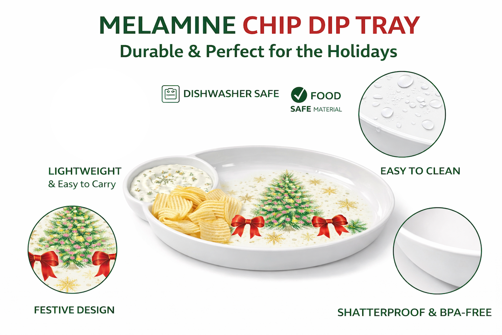 Chip & Dip Serving FormatBuilt-in center dip bowl with surrounding platter for snacks and appetizers.