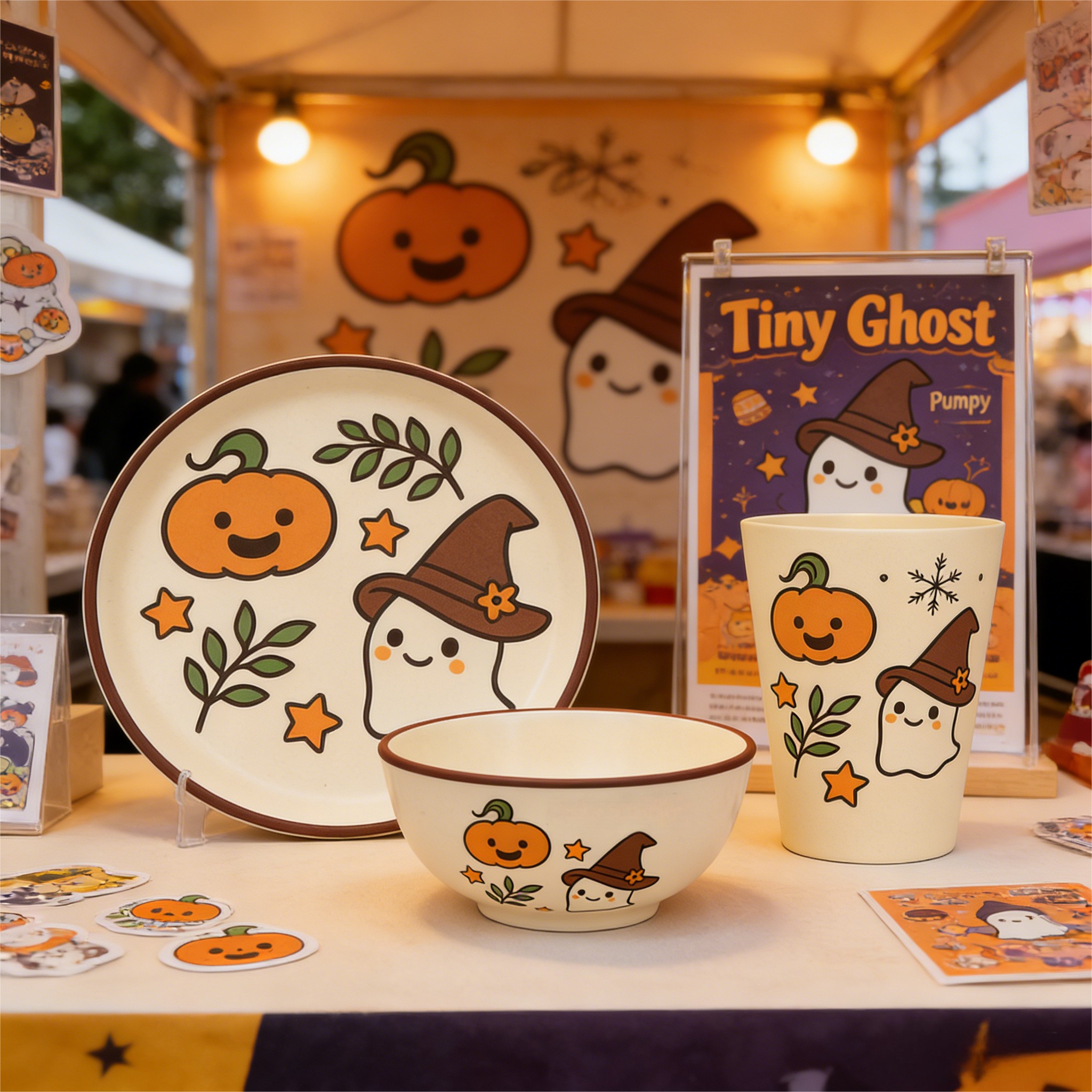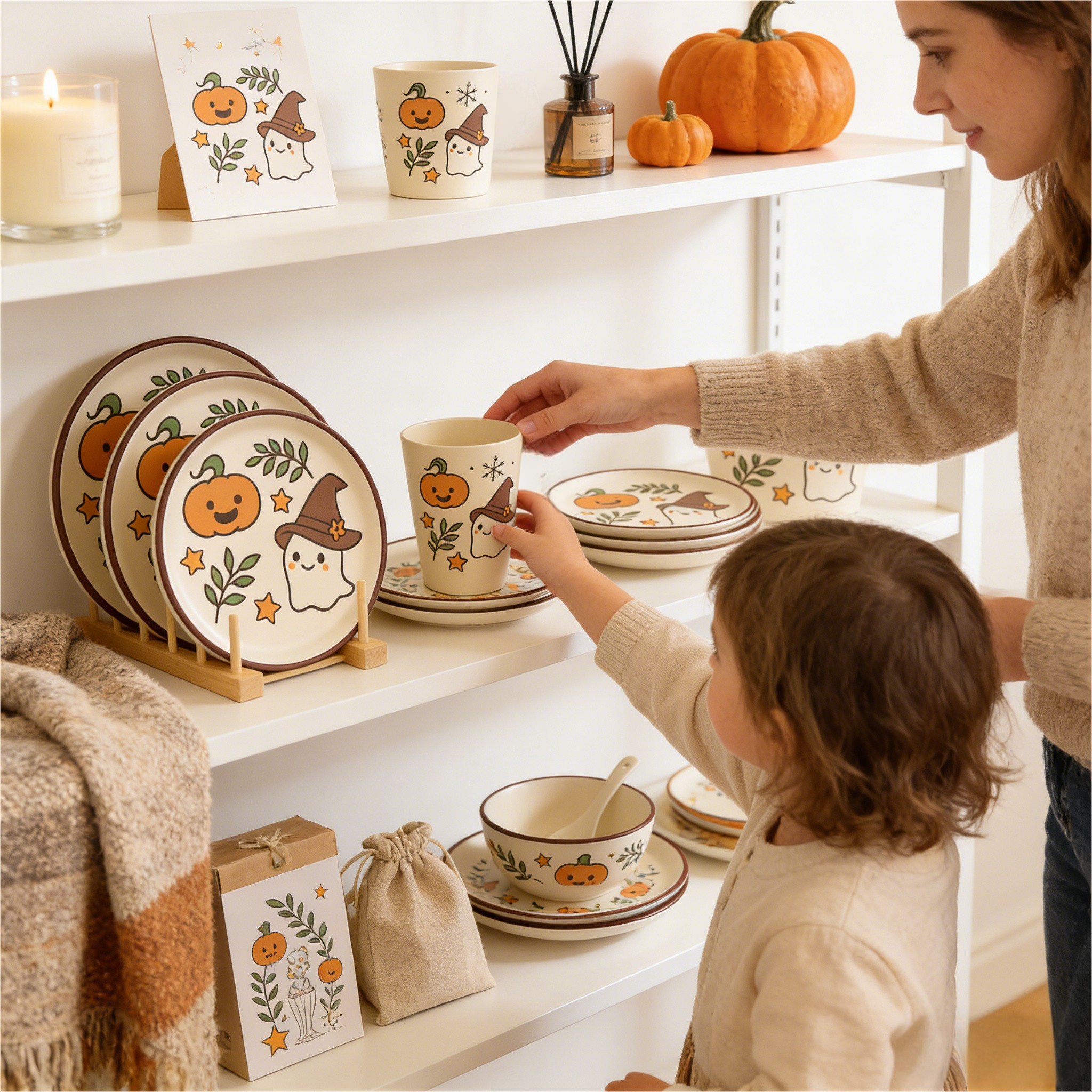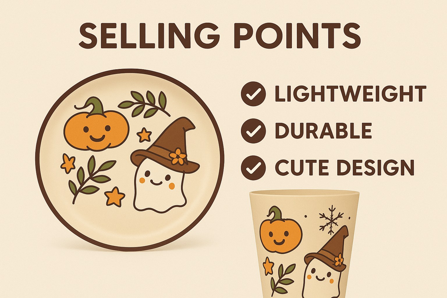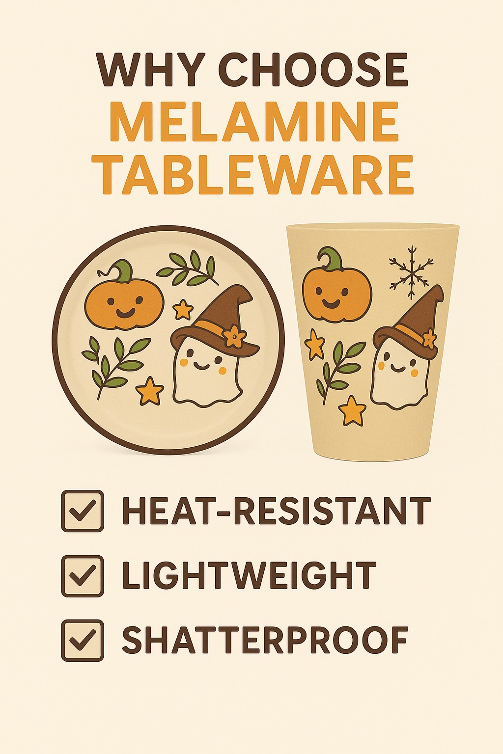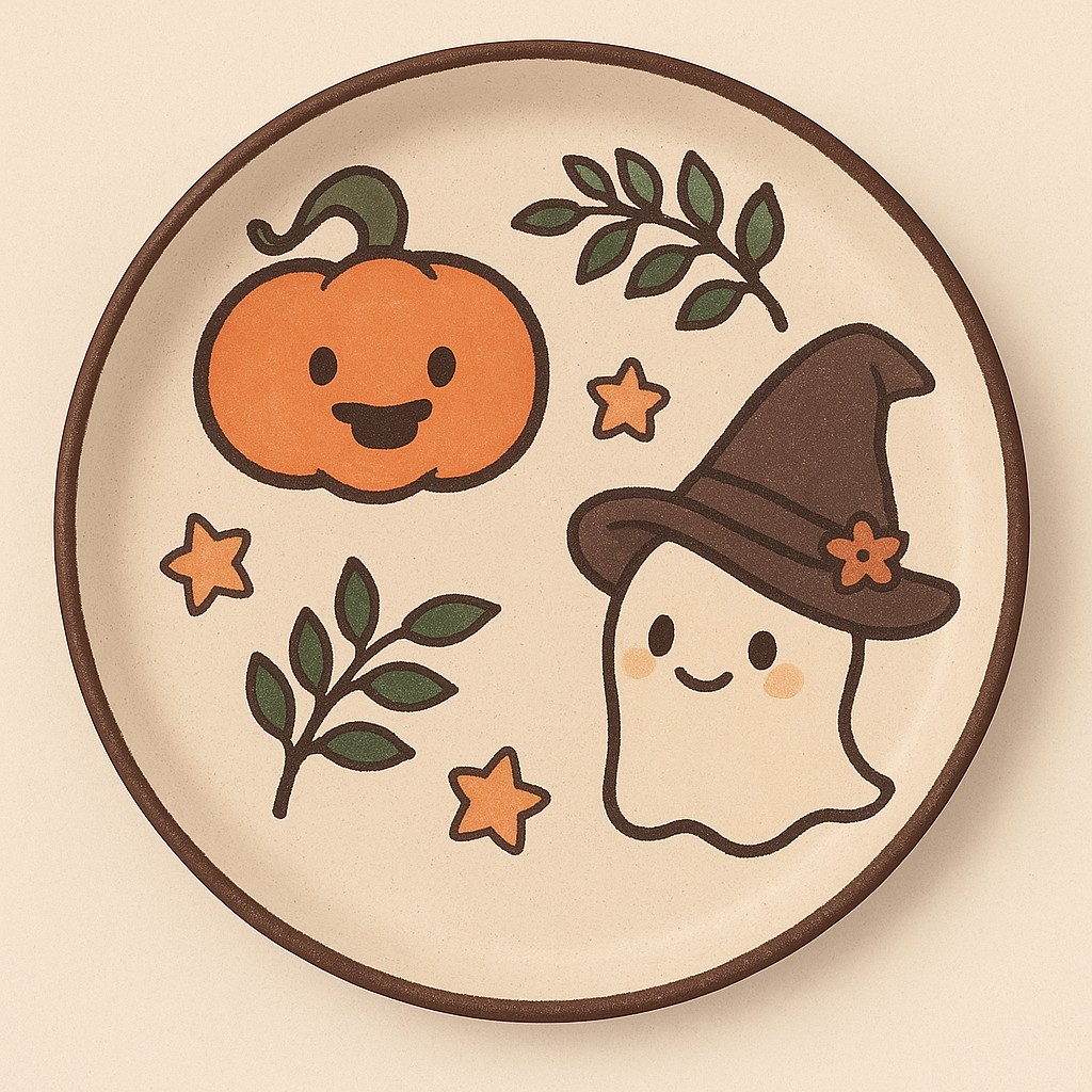 Product Name: 8-Inch Melamine Halloween Plate – Cute Pumpkin & Ghost Cartoon Design