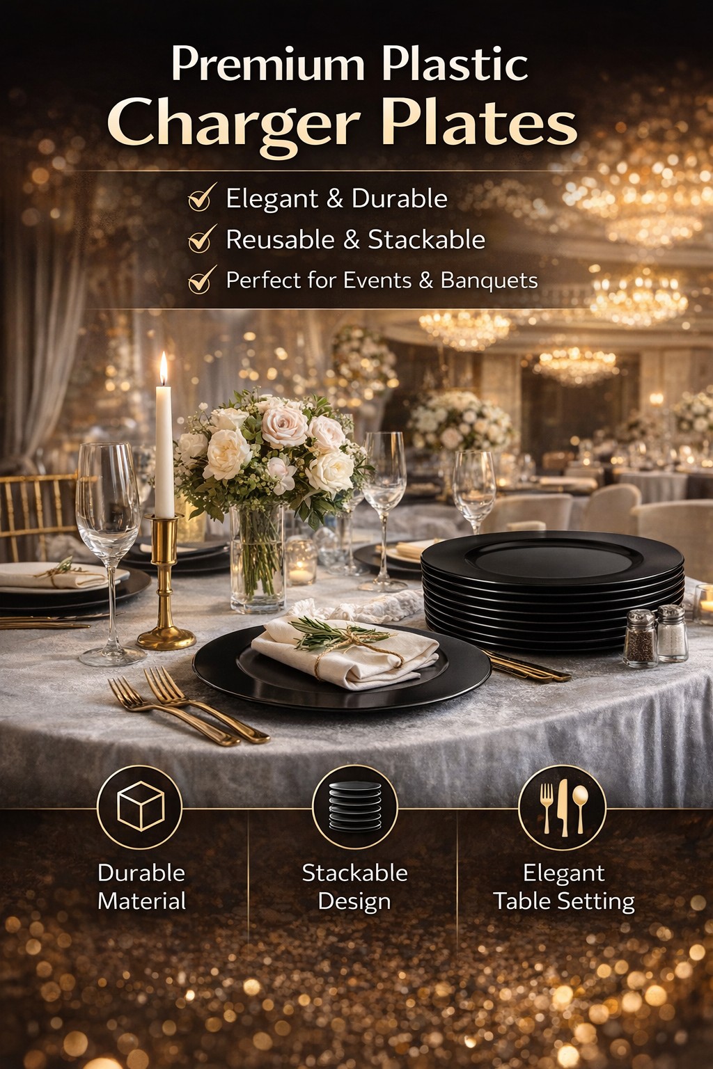 Suitable for catering service, corporate events, formal dining, and venue setups.