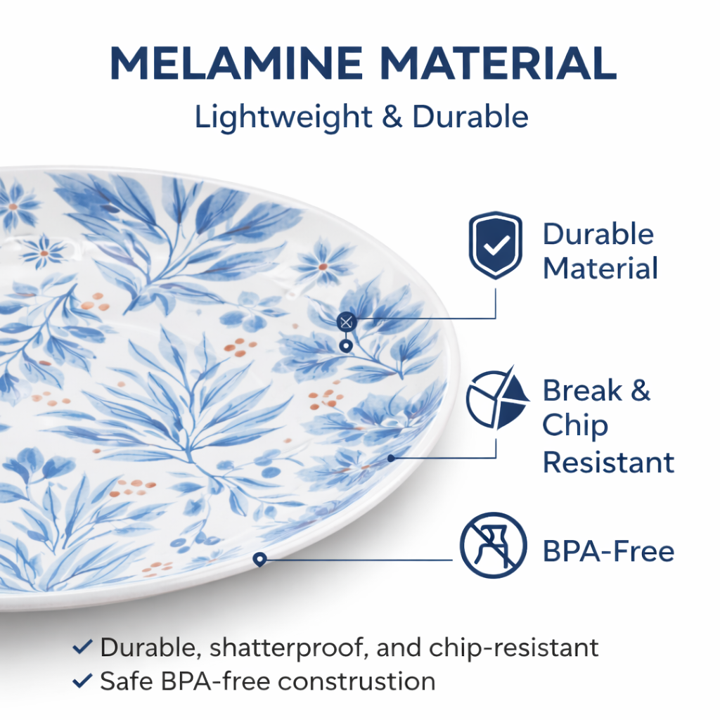 BPA-free and family-friendly, suitable for daily dining, entertaining, and both indoor and outdoor use.