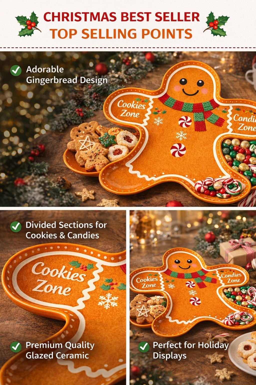 Multiple sections for cookies, candies, snacks, or appetizers