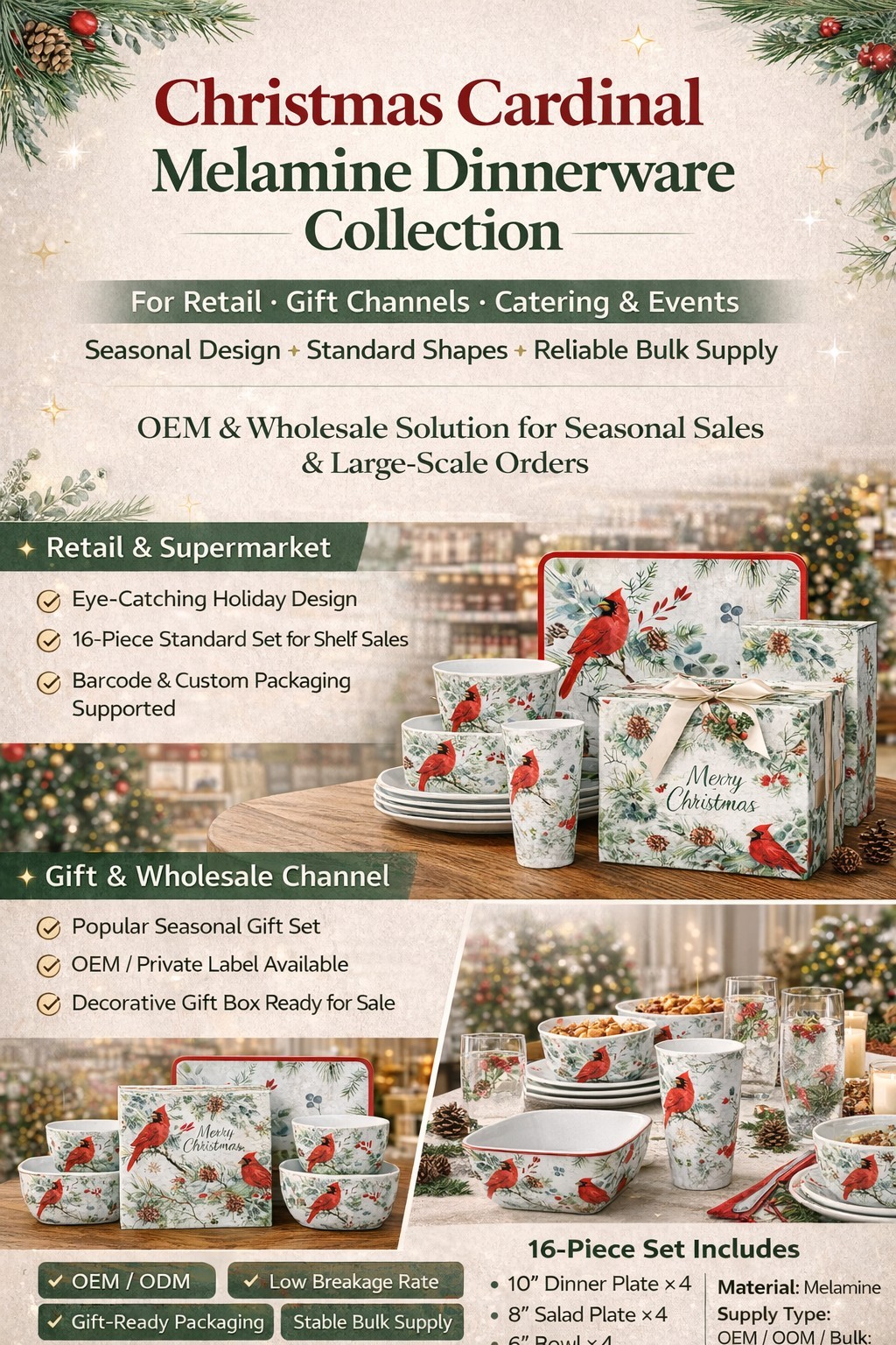 Christmas Melamine Dinnerware Wholesale Cardinal Design Tableware