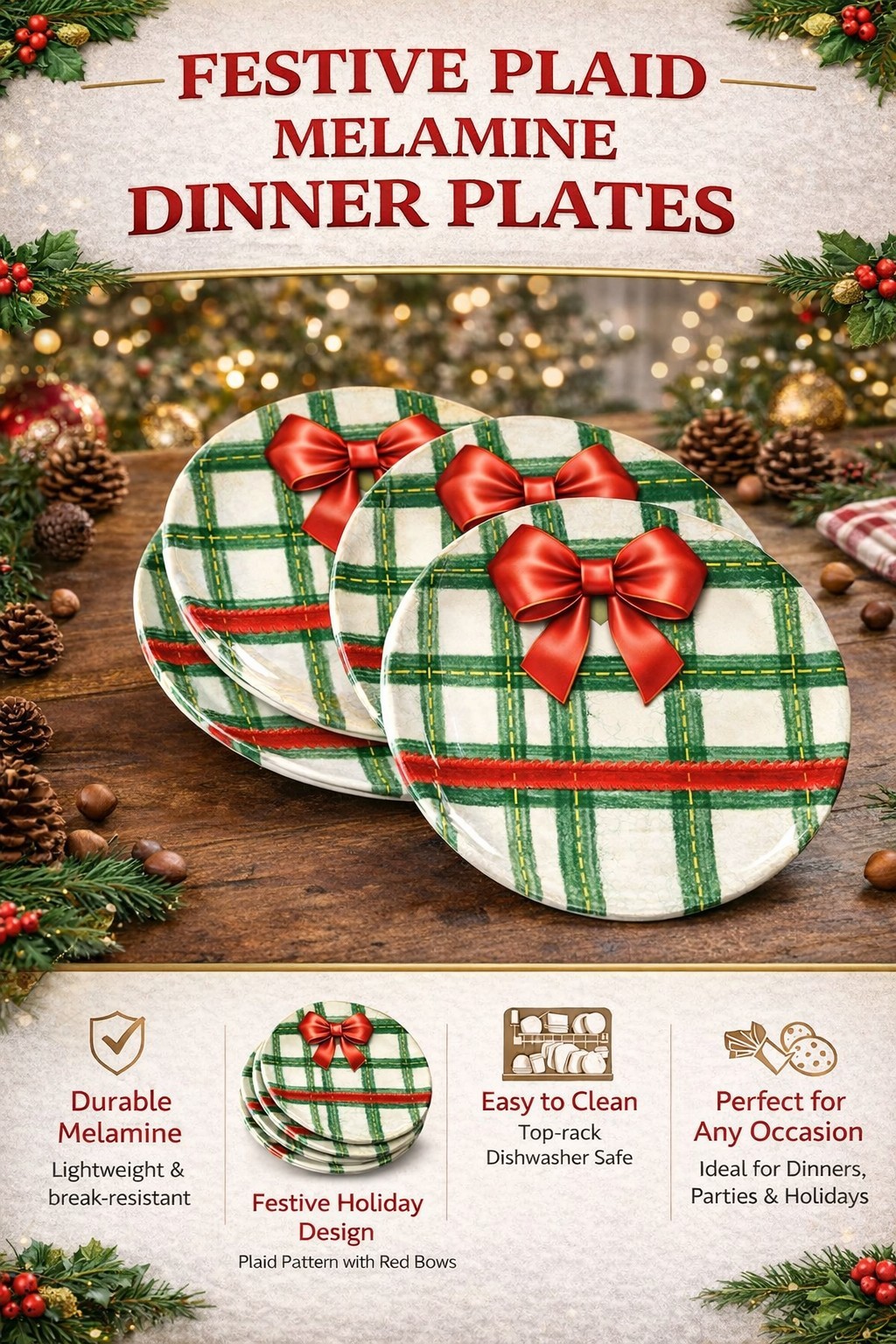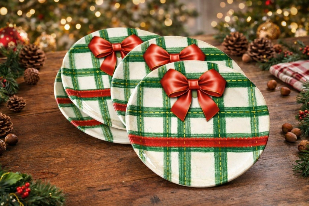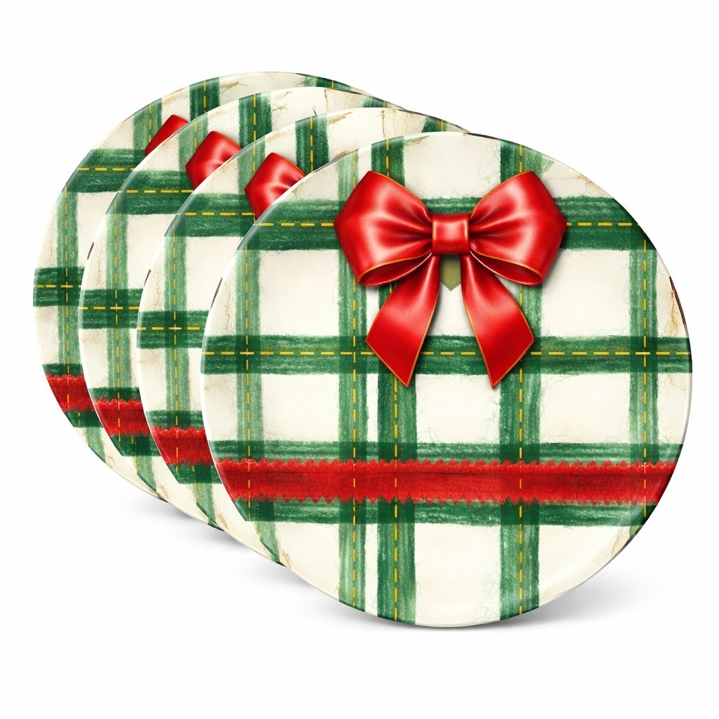 Christmas Plaid Melamine Serving Platter 11 Inch for Retail Programs